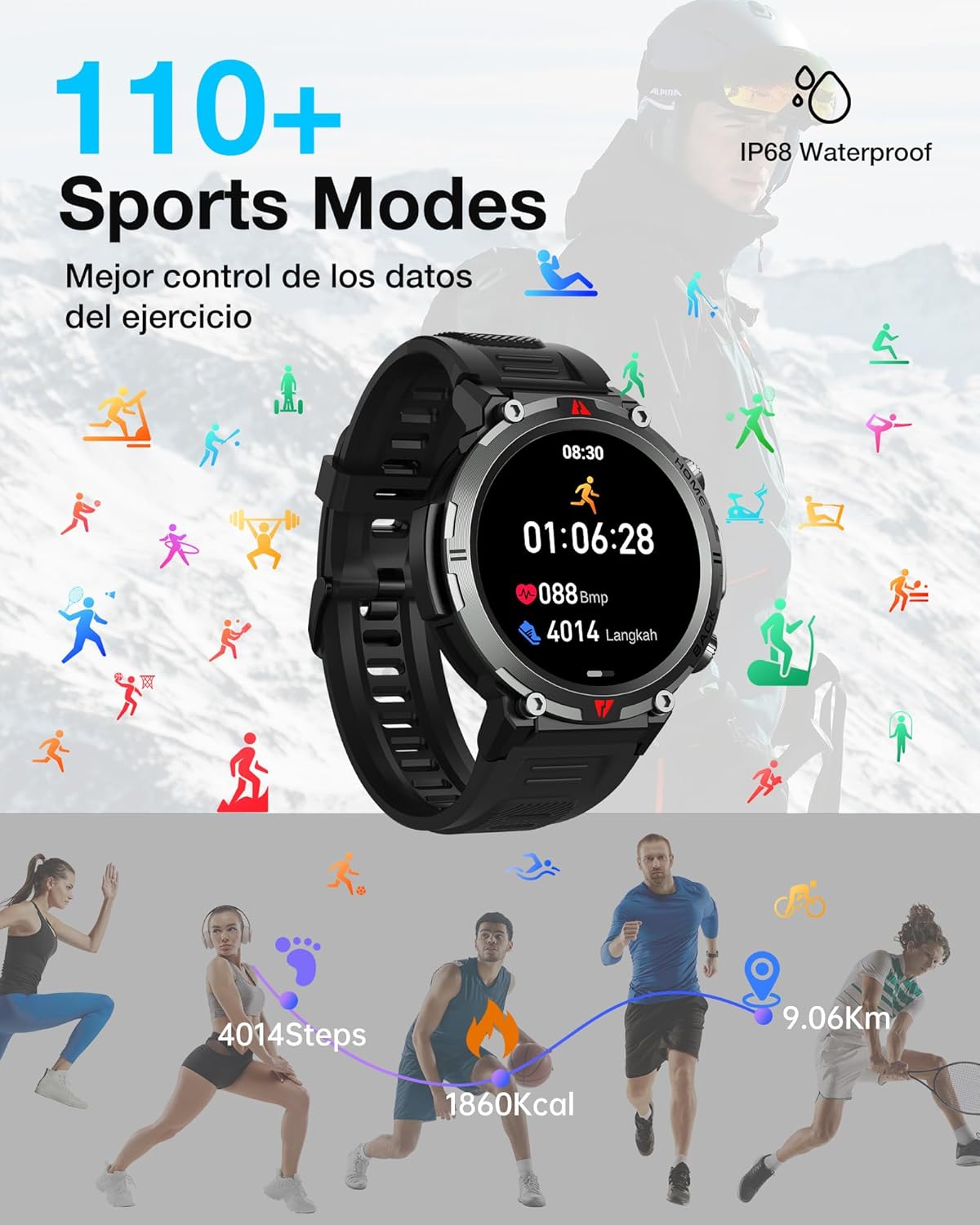 IFMDA Smart-Watch-for-Men – 1.45″ Smartwatch with Call Function, 110+ Sports Modes, Fitness Watch with Heart Rate/SpO2/Sleep Monitor Step Counter, IP68 Waterproof Mens Watches, Gifts for Him