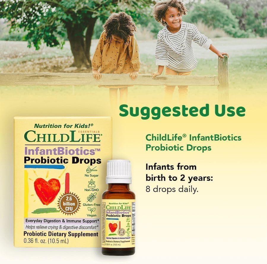 SUGGESTED USE – Give 8 drops of our infant probiotics to babies from birth to 2 years old for healthy growth, reduced stomach discomfort & reduced duration of loose stools & crying in infants