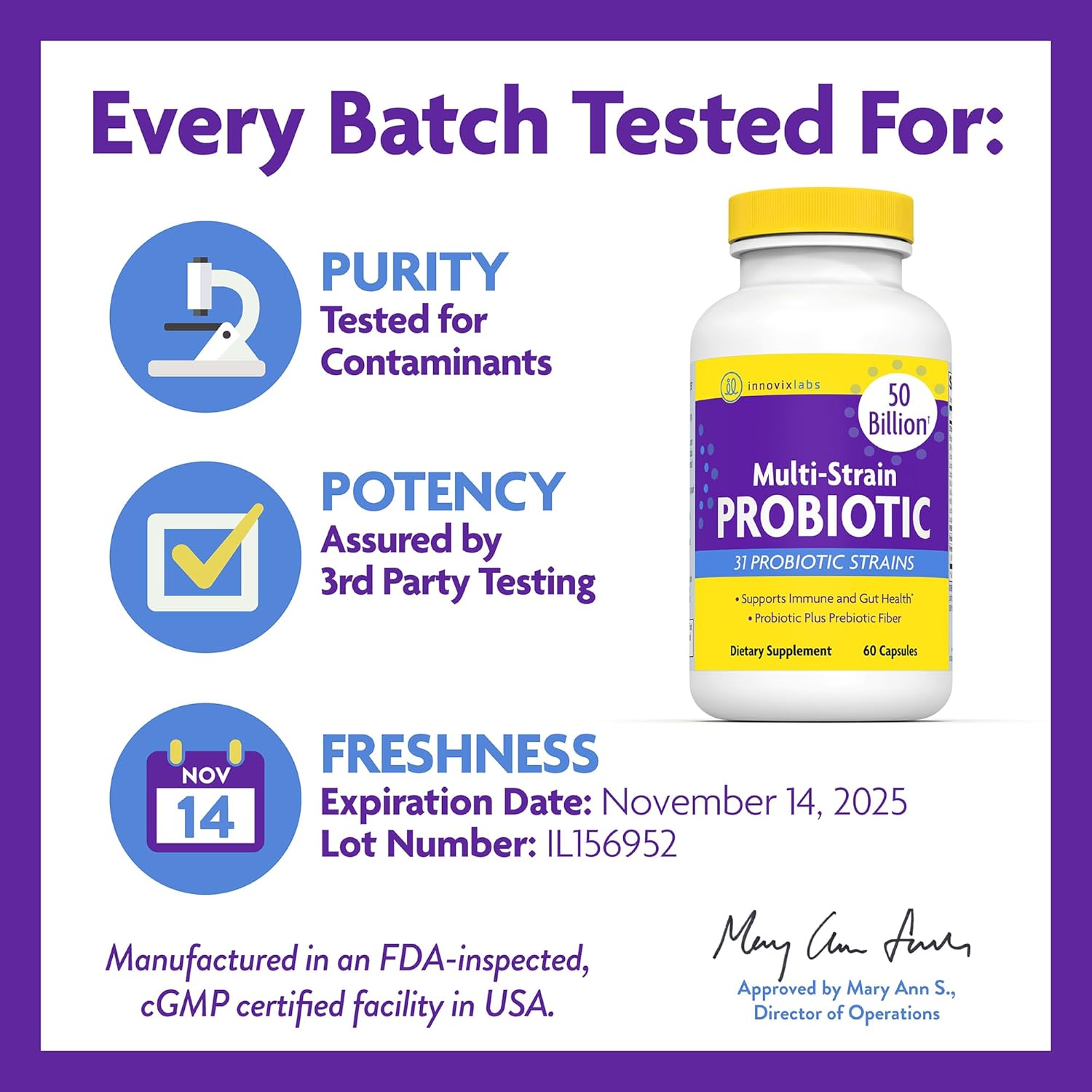 InnovixLabs Multi-Strain Probiotic Supplement, 50 Billion CFU, 60 Time-Release Caps, Probiotics for Women, Men, Adults: Lactobacillus, Bifidobacteria, Pediococcus, Plus Prebiotic Fiber, Gluten-Free