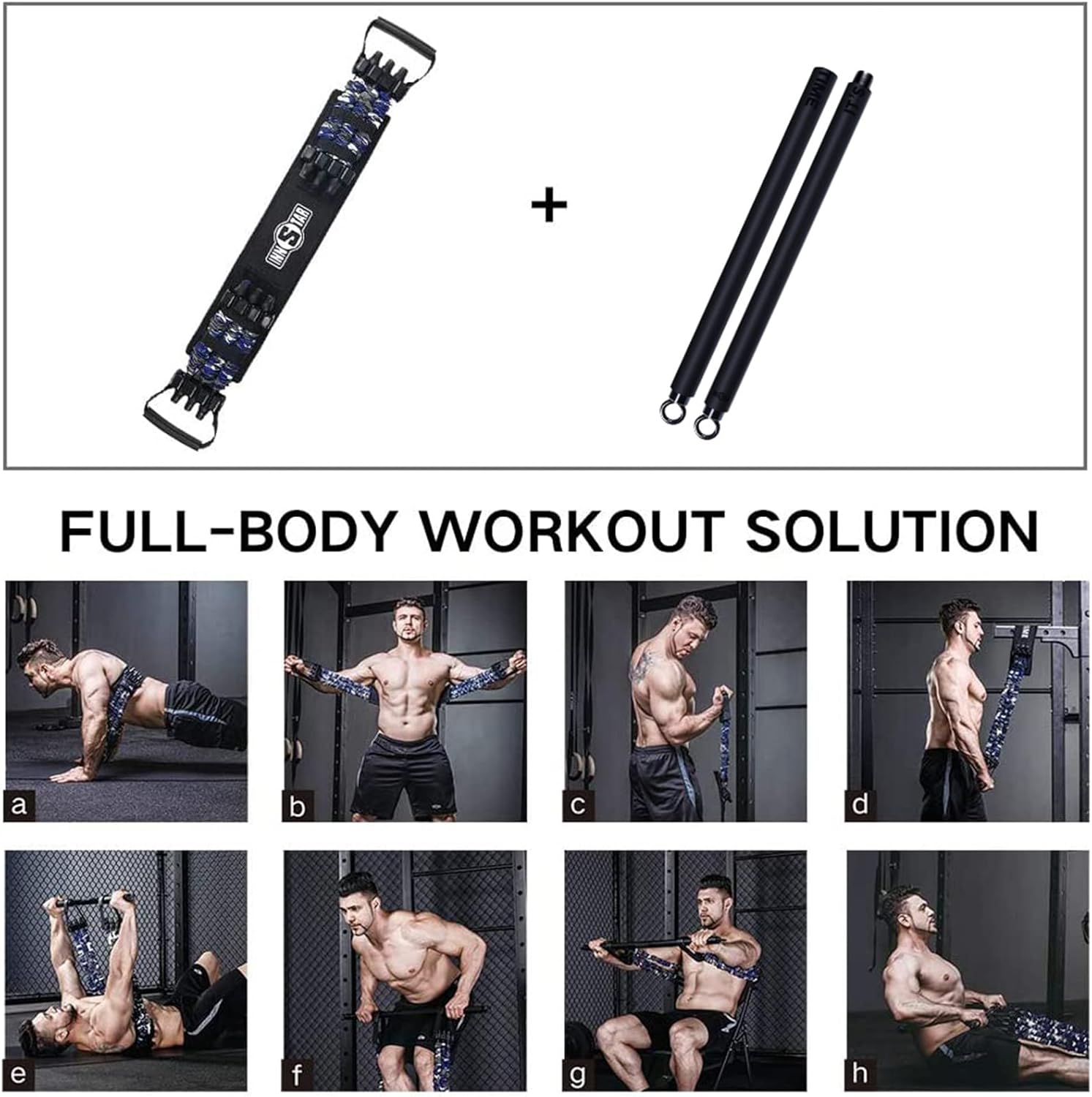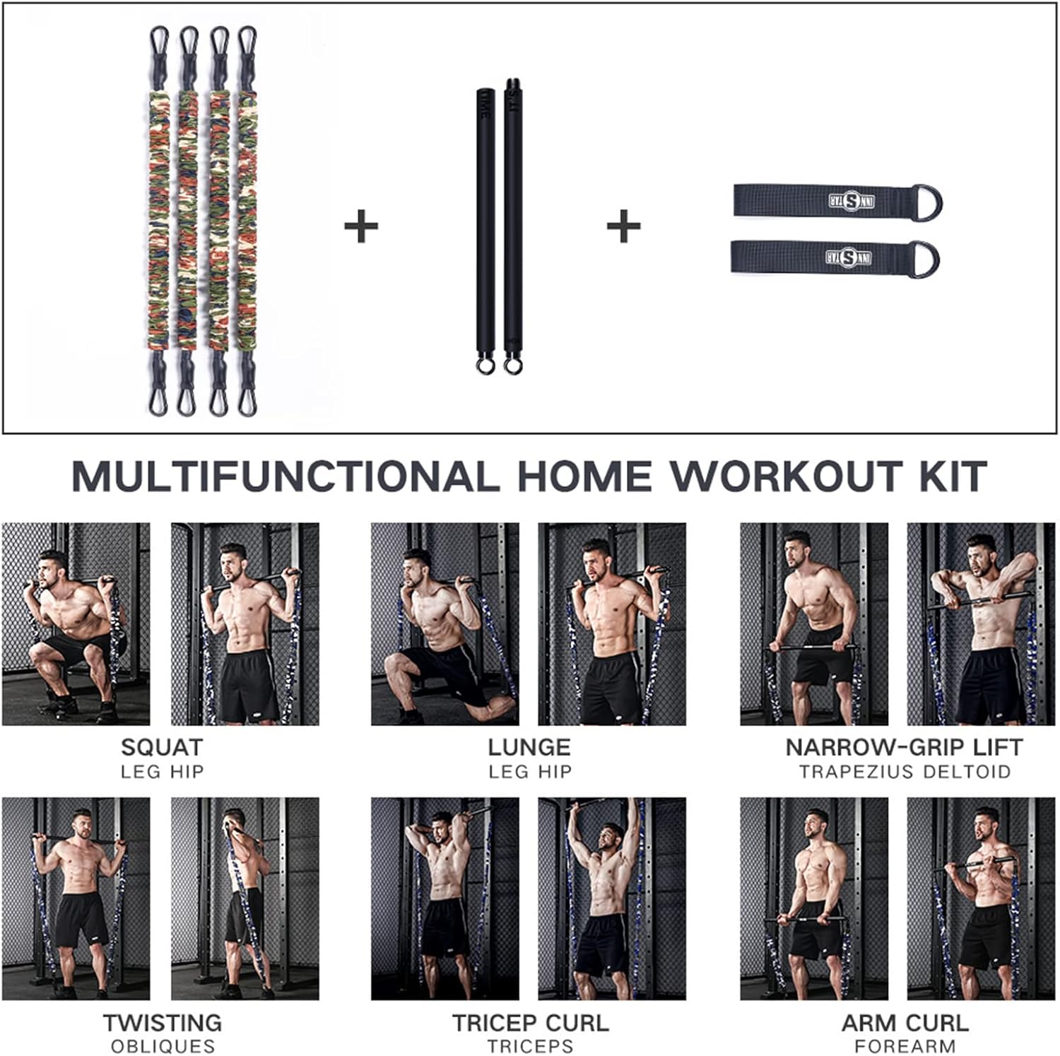 INNSTAR Portable Home Gym Set with Workout Bar, Bench Press Set, Squat Resistance Band, Door Anchor and More-Full Body Workout Equipment to Build Muscle and Shape Body