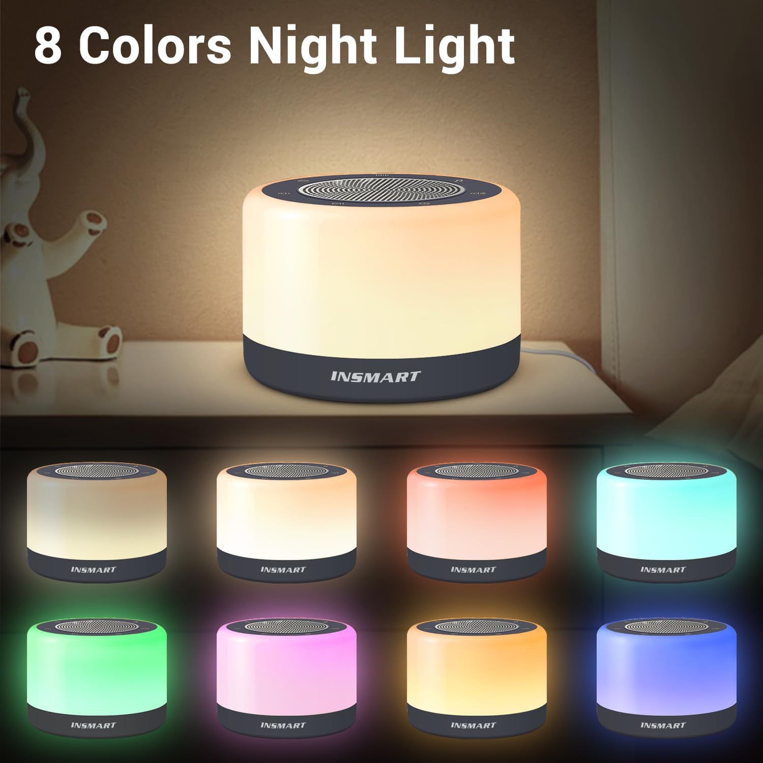 White noise sound machine has 8 colors to choose as a night lighting resource. Tap the metal speaker grill to turn on / off the night light. It’s satisfied all your lighting requirements.