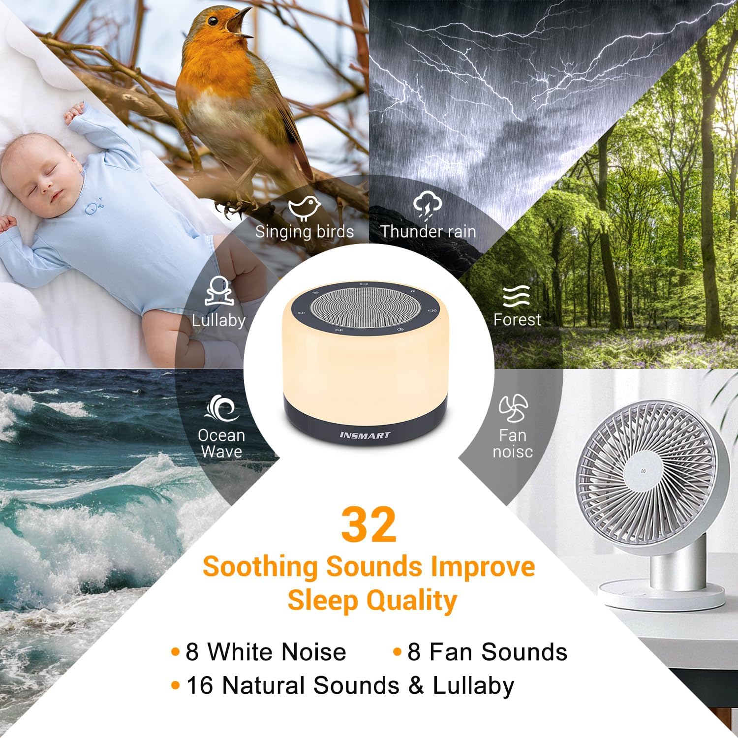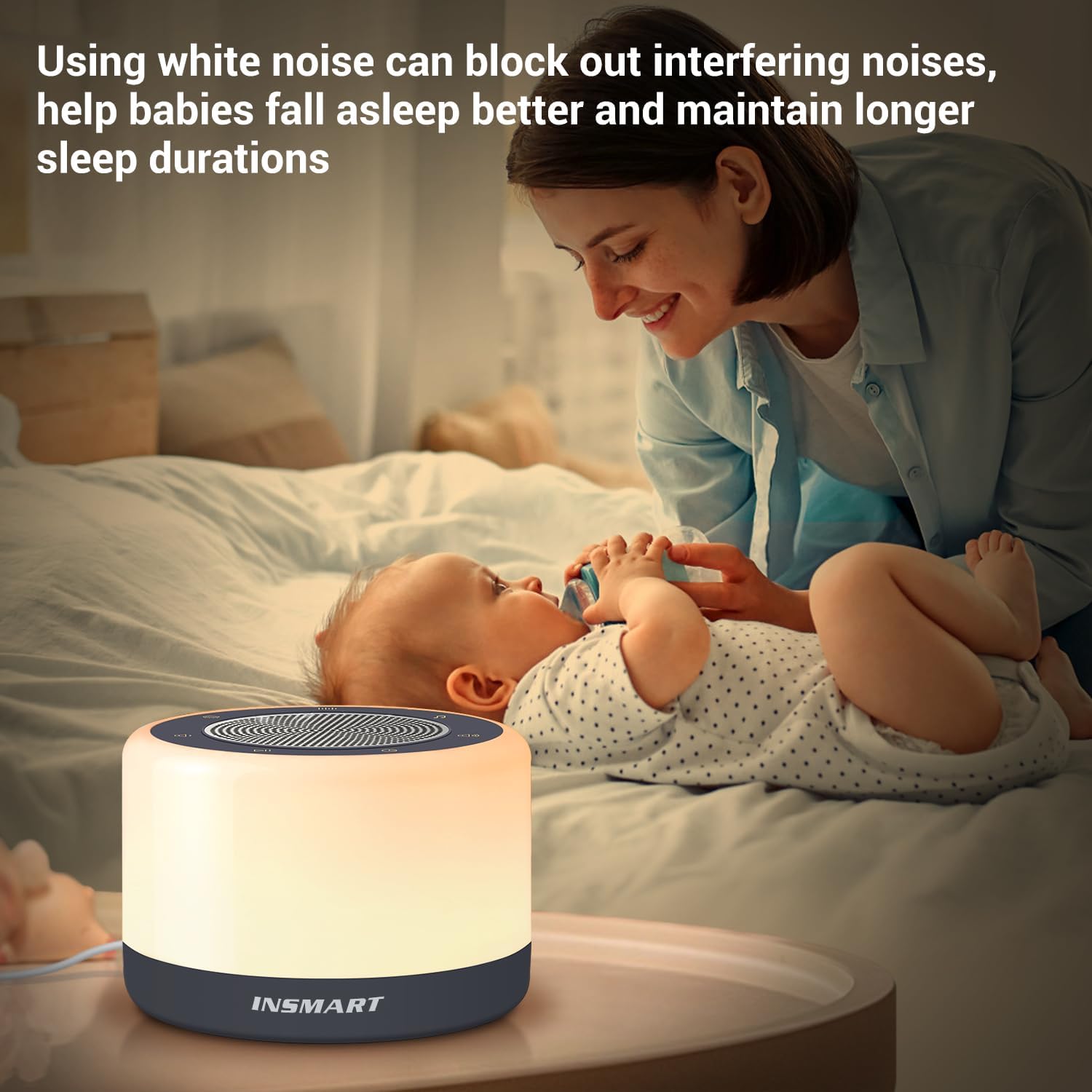 If you are looking for a good sound machine baby, you can fully rely on the INSMART sound machines, which comes with 30 high-fidelity and naturally soothing sounds to help you fall asleep faster, drift off into sweet dreams and relieve fatigue.
