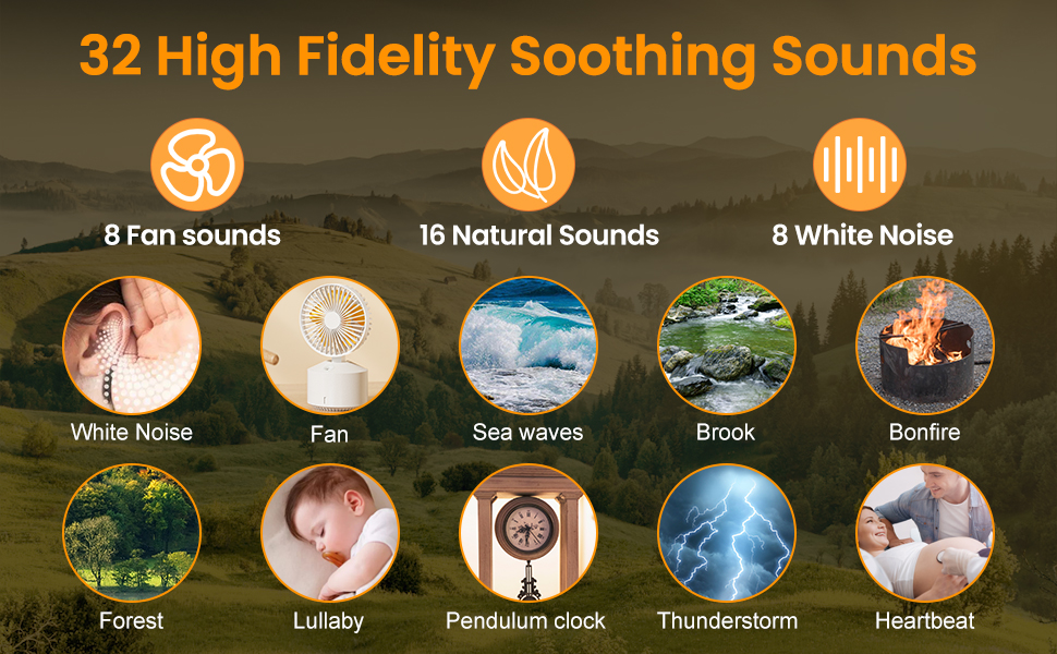 CALMING NATURAL SOUND: Close your eyes and quiet your mind to the soothing sounds of wind gently blowing. The Sound machine for baby provides peace and tranquility to help you relax after a long day.