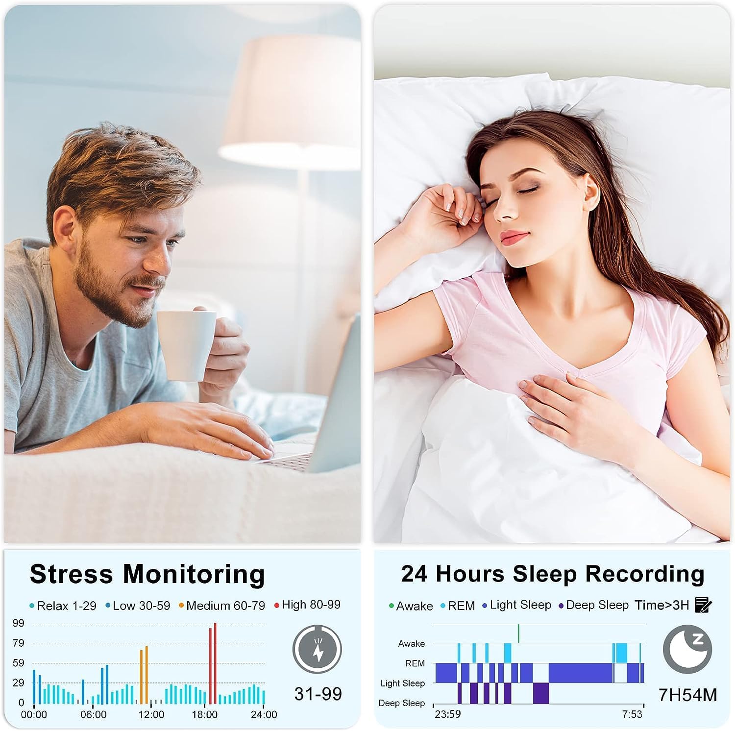 🌙【Mental Stress Monitoring + Sleep Tracking】Built-in the precise monitoring chip to make monitoring data more accurate. Smart watches for women men track your daily stress and daytime/night sleep condition (it will record Deep/Light Sleep, REM and Awake Time when that sleep time over 3 hours), help you pay more attention to the mental health status and improve better sleep habit