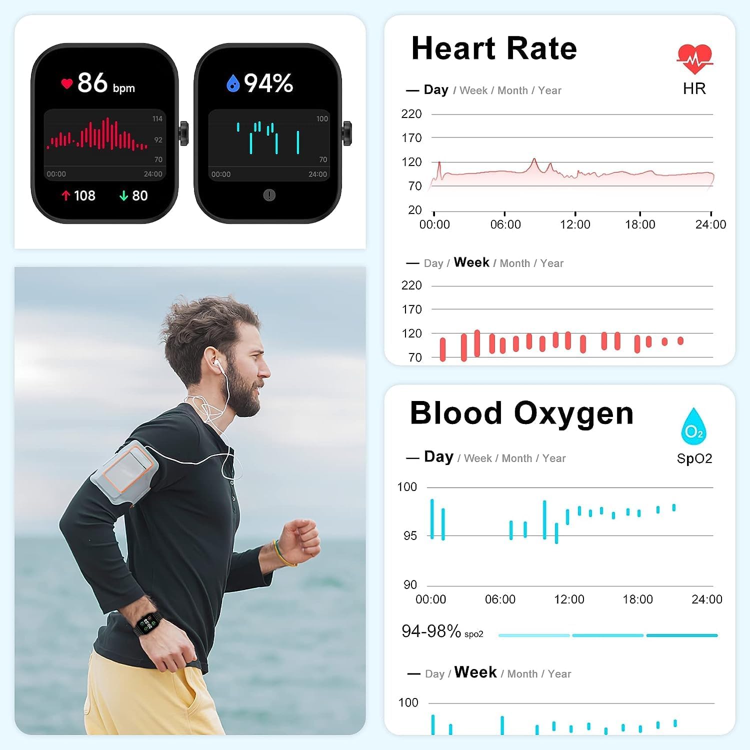 ❤【Real Time Heart Rate Monitoring + Blood Oxygen Detect】This smart watch for men can track your heart rate and blood oxygen automatically. And the measure data out of the set range (too high or too low) when doing high intense sports, it will alert you and you could stop or adjust the sport rhythm in time. And you could view your all day measure history records in the “VeryFit”APP