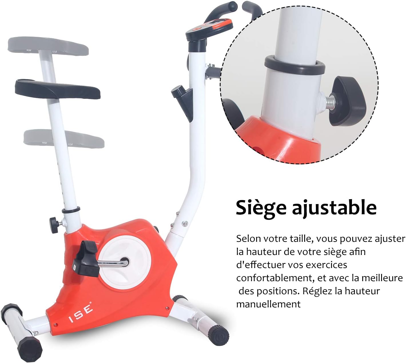 The materials used to make this ISE bicycle are mainly plastic and foam for maximum comfort. The foam is located on the seat, which is also adjustable at will between 60 and 74.5 cm and the handles for your workouts are comfortable.
