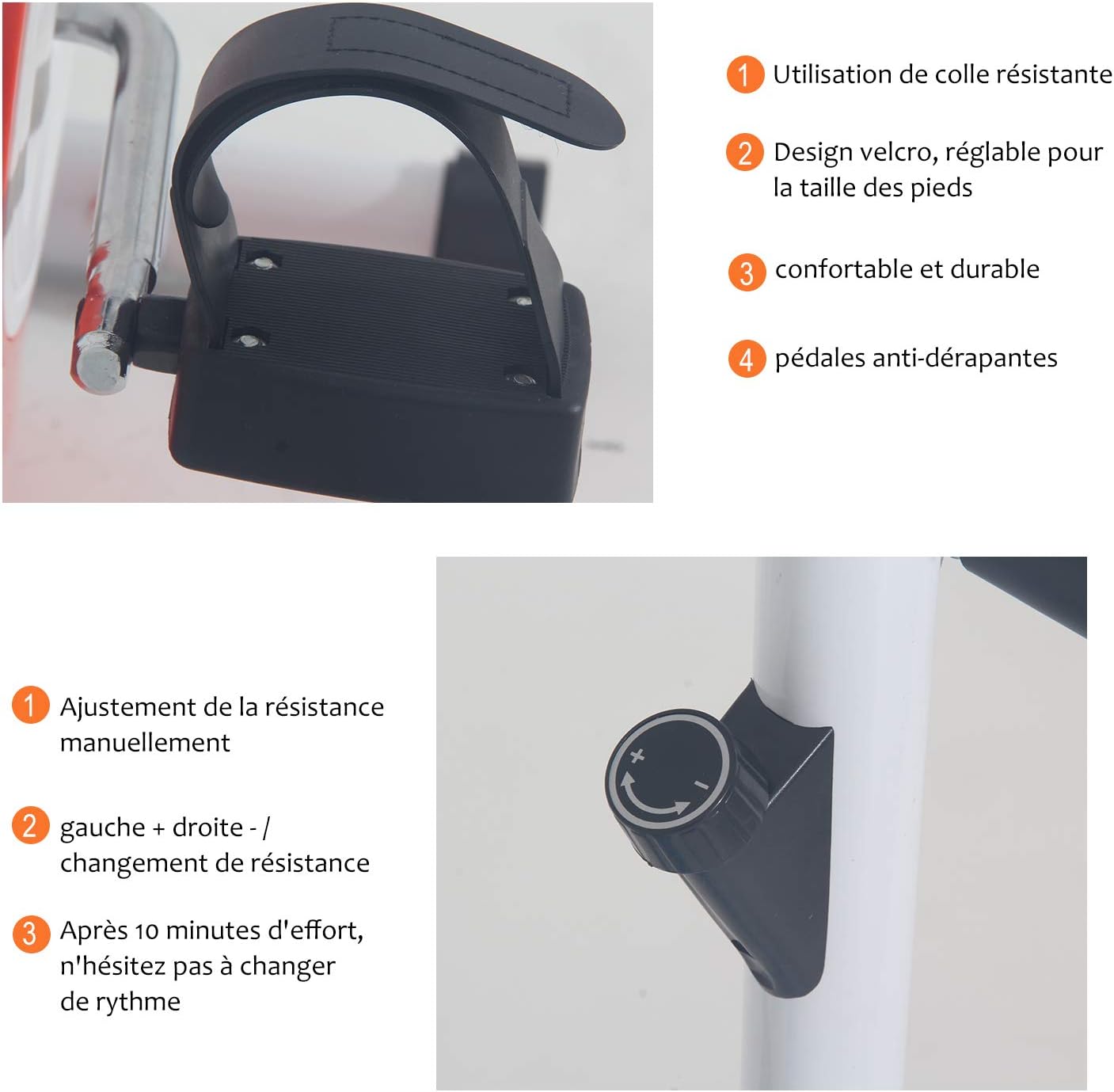 ✅ The grips of this bike are non-slip, as are the pedals. In addition, you can manually adjust the resistance of this bike, with a wheel available, with an + and a – to guide you. What we recommend is to change the resistance during exercises, every 10 minutes for greater efficiency.