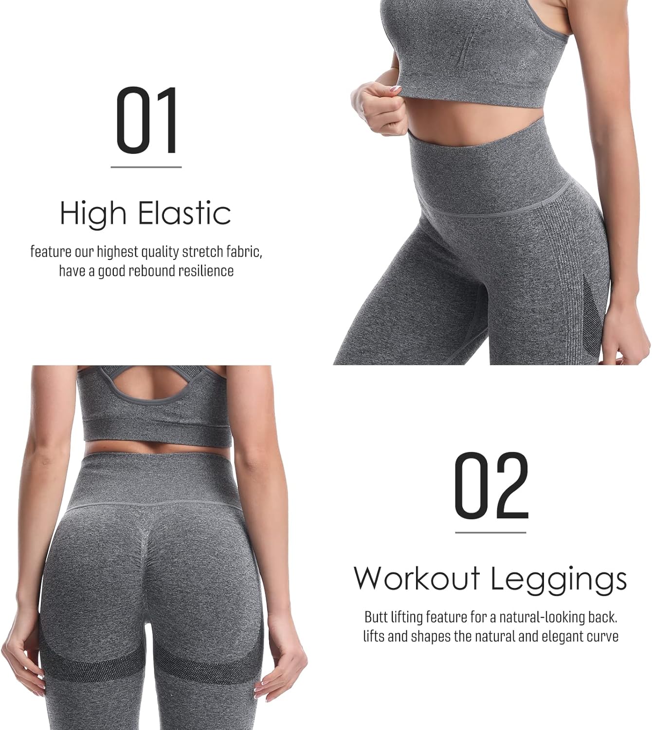 JOJOANS Women’s 2 Piece Seamless Tracksuit Set Gym Workout Yoga Outfit Casual Loungewear Racerback Sports Bra and High Waist Leggings