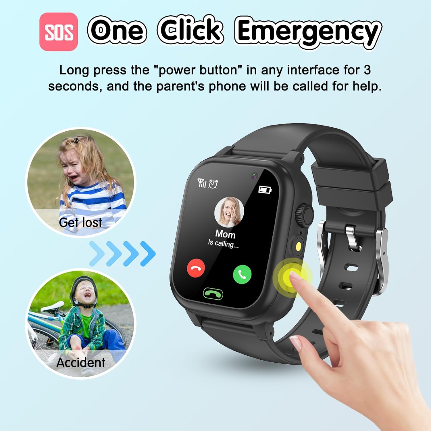 【Kids Smart Watch with Multifunction】Our Kids Smart Watch with Multifunction, specially designed for children aged 3 to 12. Packed with essential features like LBS positioning, GPS tracking, SOS call, safe zone setting, classroom mode, phone book, photo album, alarm clock, flashlight, and more, all with outstanding low power consumption. Our accompanying app enhances the user experience with additional convenient features. Ensure your child’s safety and enjoyment with this versatile device.