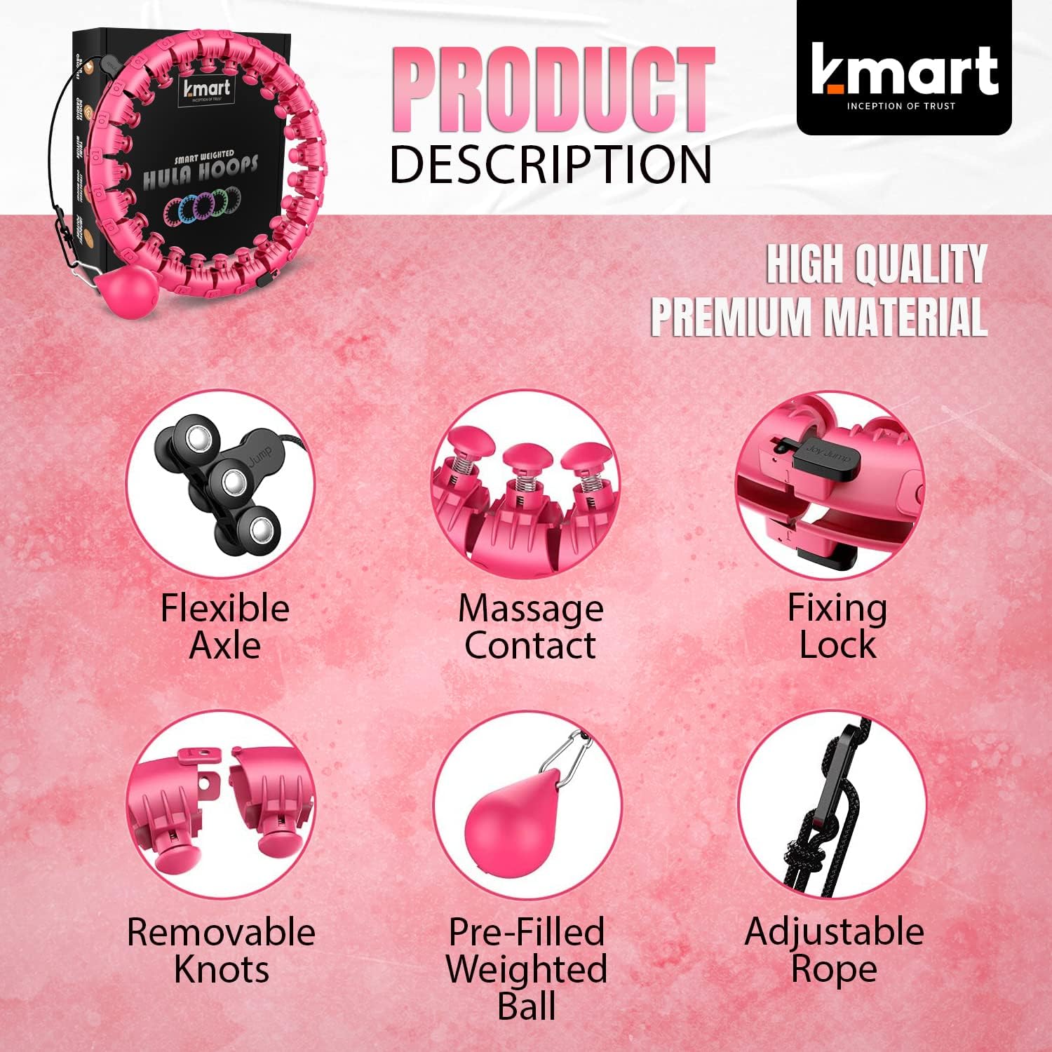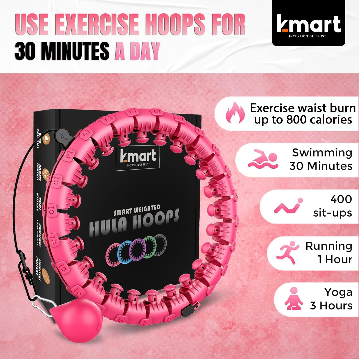 K-MART Smart Hula Ring Hoops, Weighted Hula Circle 24 Detachable Fitness Ring with 360 Degree Auto-Spinning Ball Gymnastics, Massage, Adult Fitness for Weight Loss