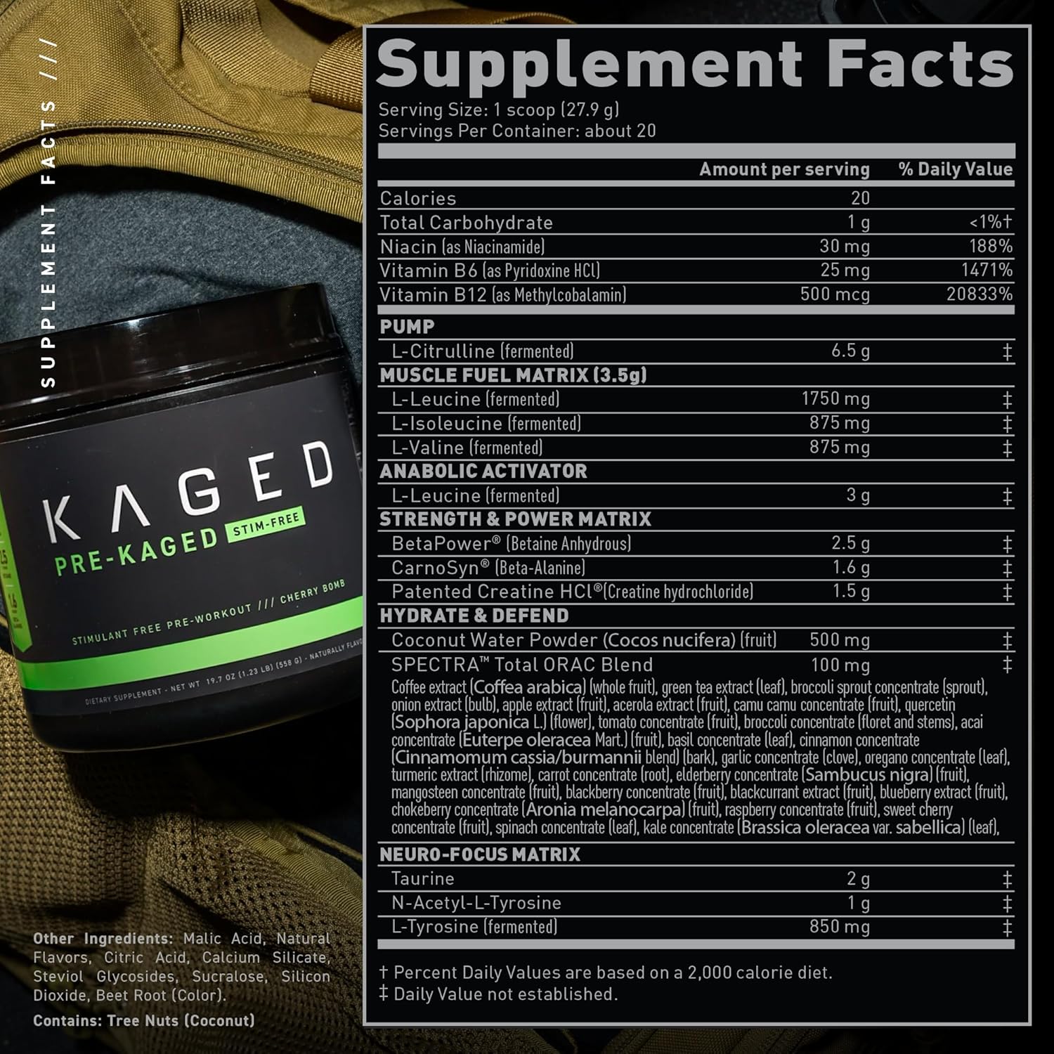THE INDUSTRY’S LARGEST, MOST FULLY DOSED SCOOP: With max dose ingredients, and a massive 32g per serving, just one scoop does it all. Kaged Muscle is a health-forward brand, so like all our products, PRE-KAGED has been 3rd party tested, screened for banned-substances, and our ingredient profiles are transparent. So, even the most meticulous athletes can see exactly what they’re getting.