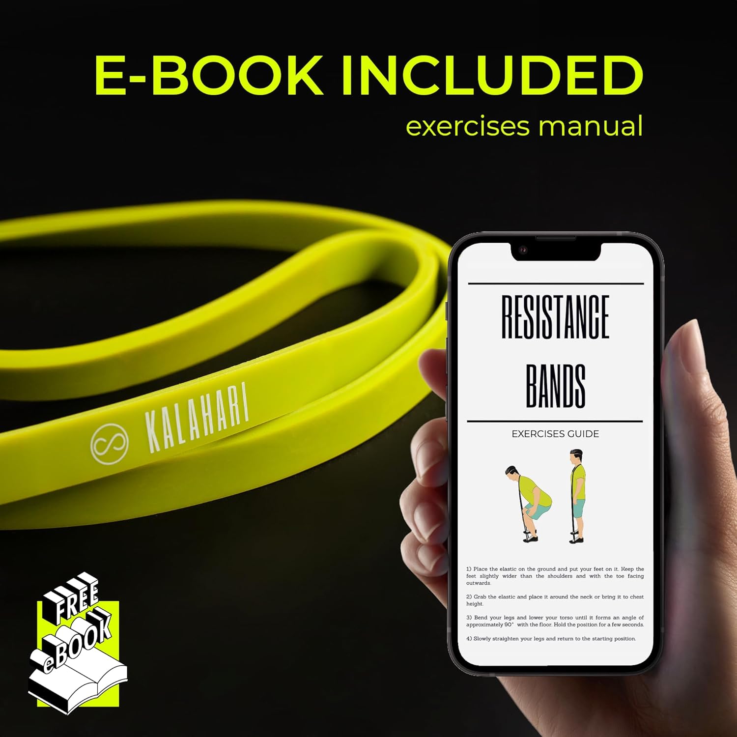 KALAHARI Resistance Bands Pull Up assist plus exercise Ebook – Power band Fitness for Strength Training, Gym, Yoga, Sport, Home, Stretching, Crossfit – Powerlifting long loop bands BLACK + YELLOW