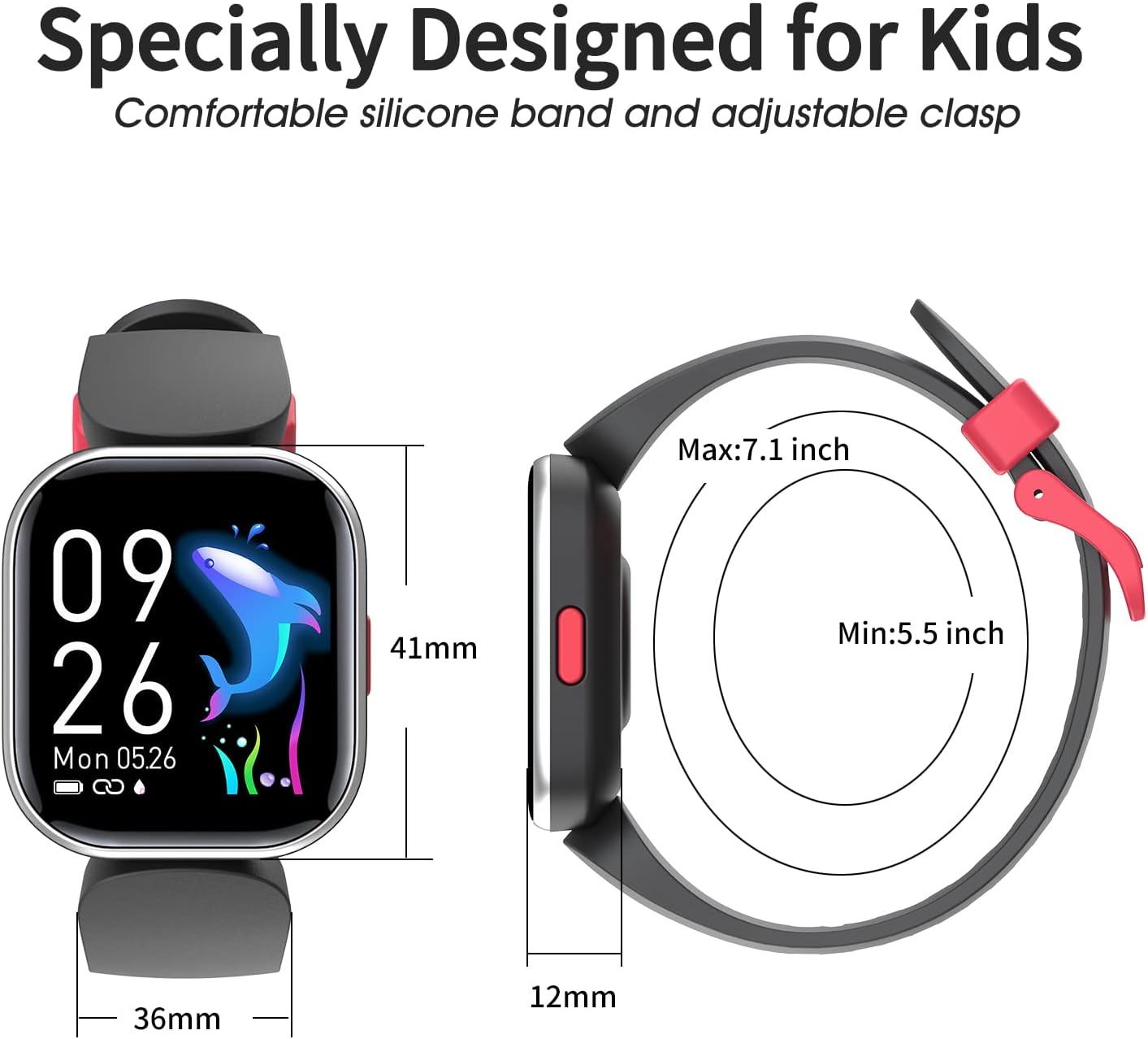 Kid-friendly Fitness Watch‘This is a fitness tracker specially designed for children. comfortable durable silicone band and secure adjustable clasp, available in many different lovely colors. Kids can also choose their favorite 4 different theme interfaces and DIY Watch Face, It can be any photo, such as your family, pet, landscape etc. Adjustable watch straps can fit for 5-7.5 inches wrist. Always ready for playtime. Make Kids Fitness Fun and Build Healthy Habits‘Multifunctional kids fitness watch with the function of Pedometer, Stopwatch, Heart rate monitor, Sleep monitor, Alarm clock, time display, Calories calculation, Music control, Remote Camera Shooting etc. 19 Sport modes, such as Walking, Running, Cycling, Swimming, etc. Sedentary reminder, Drink water reminder, Call /SMS /Message reminder, etc., IP68 waterproof, ready play in water. Easy To Charge & Long Battery Life‘Kids can charge the fitness watch very easy with the Magnetic charging cable. The fitness tracker takes only 2 hours to fully charge providing a 5-7 days battery life. which means kids can use it without worries of charging the tracker constantly, spend less time charging and more time palying. Automatic Heart Rate & Sleep Monitor‘The kids activity watch can automatically monitor your kids daily real-time heart rate and track how well your kids sleep at night. Get the data about your kids sleeping trends through the night via the €œH Band€ app.The vibrating alarm clock can wake up your kids without disturbing others, helping kids form a good sleep habit. Great Gift for Kids Boys Girls Teens‘Kids waterproof smart watch has a fashion and cute design. 1.4-inch colorful touch screen can adjust brightness, and the display screen will automatically light up when you raise wrist. it has many fun and useful functions, This will be a great Birthday, New year, Christmas gift for kids, boys girls teens.