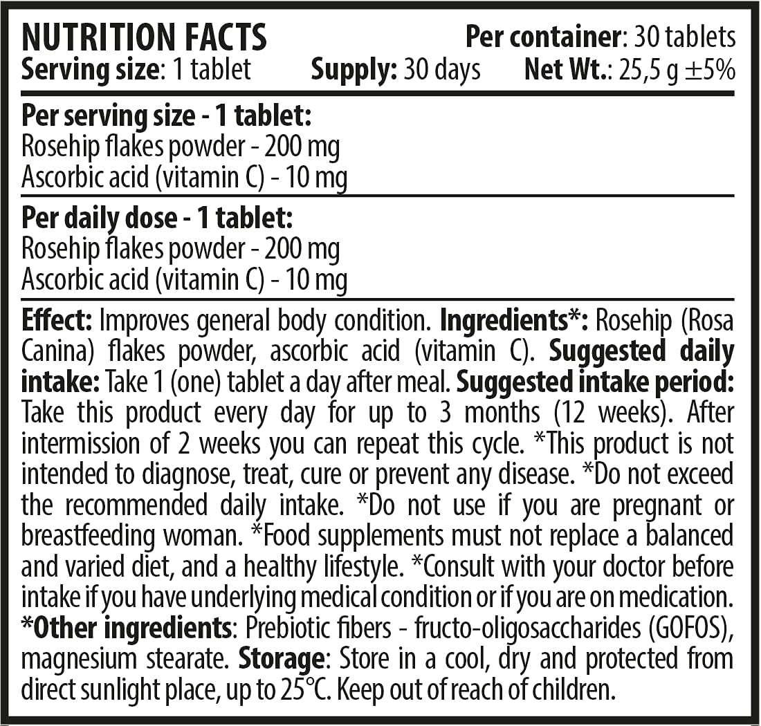 Rosehip (Rosa Canina) flakes powder, ascorbic acid (vitamin C).