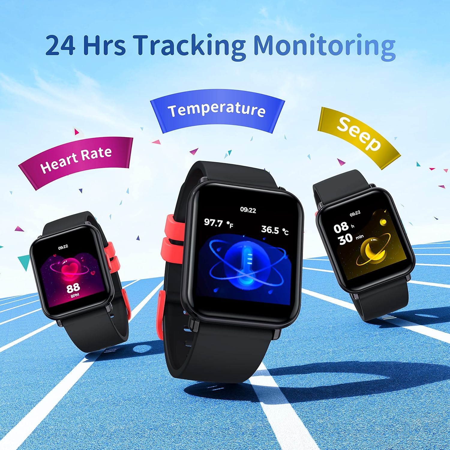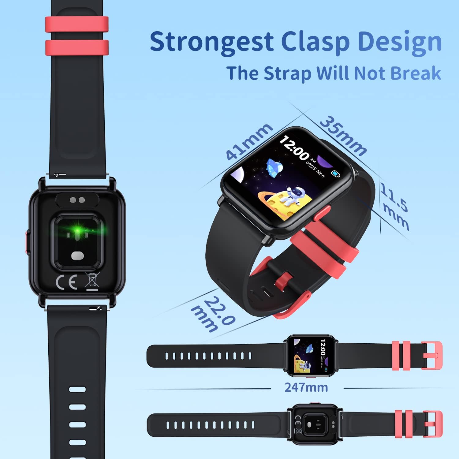 💗Kids Health Watch: Smart watch for kids built-in accurate heart rate sensor,smart watch support 24 hours body temperature and heart rate monitor.Kids smart watch automatic sleep tracker at night (deep sleep,light sleep,wakefulness),and more data can be viewed daily/weekly/monthly on the mobile APP,fitness watch which can keep you informed of your child’s health condition,be able to know the health condition of your child in time.(Fitness tracker data is for reference only, not for medical use)