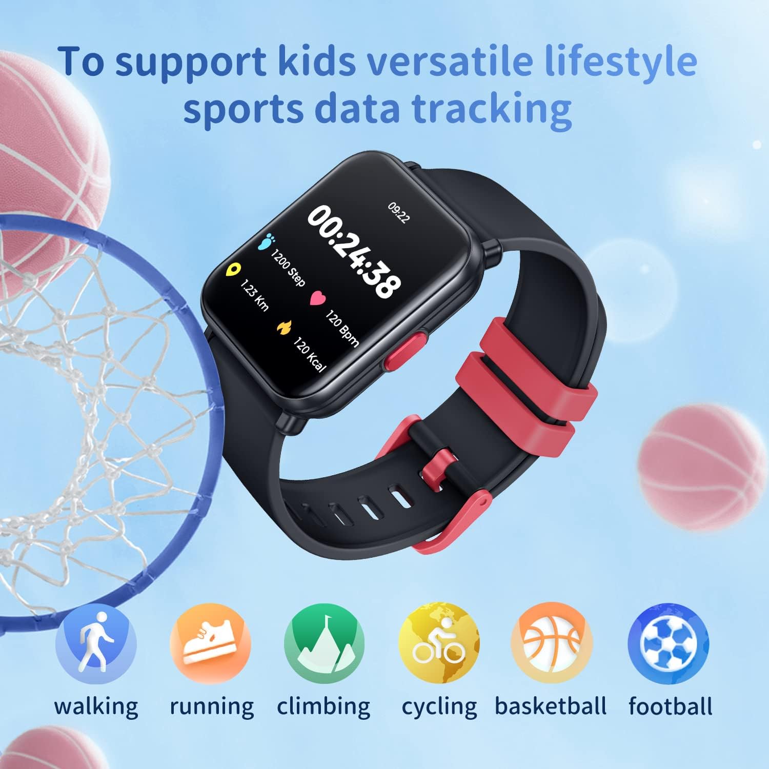 Smart watches for kids provides walking, running, hiking, cycling, basketball, football sports modes, which can scientifically meet the different sports needs of children,kids watches for boys can a full range of sports data tracking, such as heart rate, steps, calories, distance and activity time Kids smart watches have stopwatches and timers that can be used to view sports leaderboards through different exercise tests, which can better understand and stimulate children’s interest in sports