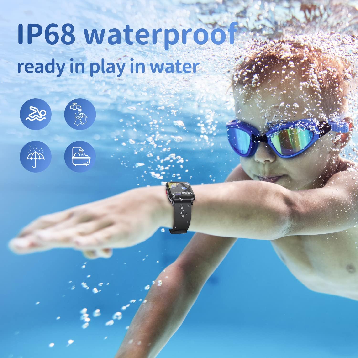 🏃IP68 Waterproof Sports Watch: Kids fitness tracker supports walking,running,hiking,cycling,basketball,soccer sports mode,kids smart watch for boys will record the data (steps,heart rate,calories,distance) when your child is exercising,smart watches for kids can view the sports ranking to understand and stimulate your child’s interest in sports.(IP68 kids tracker watch protects against splashes,rain and sweat,but kids fitness watch is not recommended for use in diving,hot water or seawater)