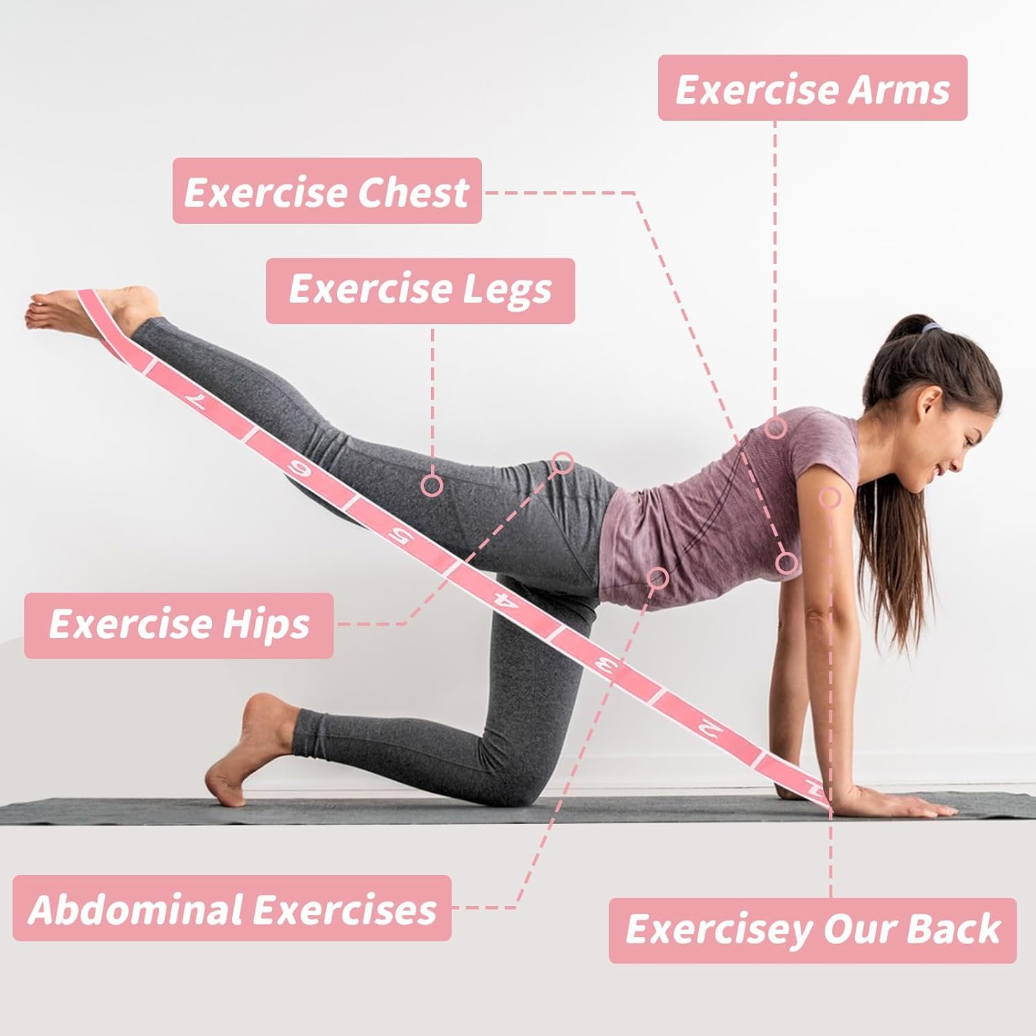 Elastic multi section Yoga stretching straps and you can change the resistance depending on which loop you pull with, free adjustment of length, designed for everyone whether beginner, intermediate or advanced level;