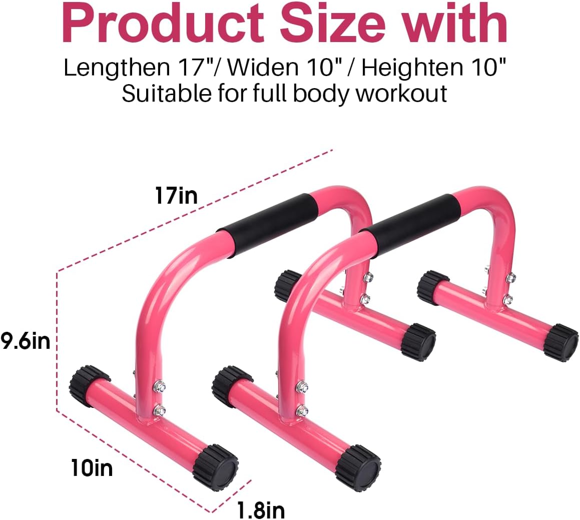 【Upper body workout】Handstand bars ideal to strengthen the overall development of the upper body, especially the muscles of the chest, shoulders and back. The extended and raised design provides you with more suitable space for exercises such as push-ups, dips, V-sits, L-sits, sit-ups, handstand push-ups, abdominal exercises, calisthenics, stretching and more bodyweight strength training.