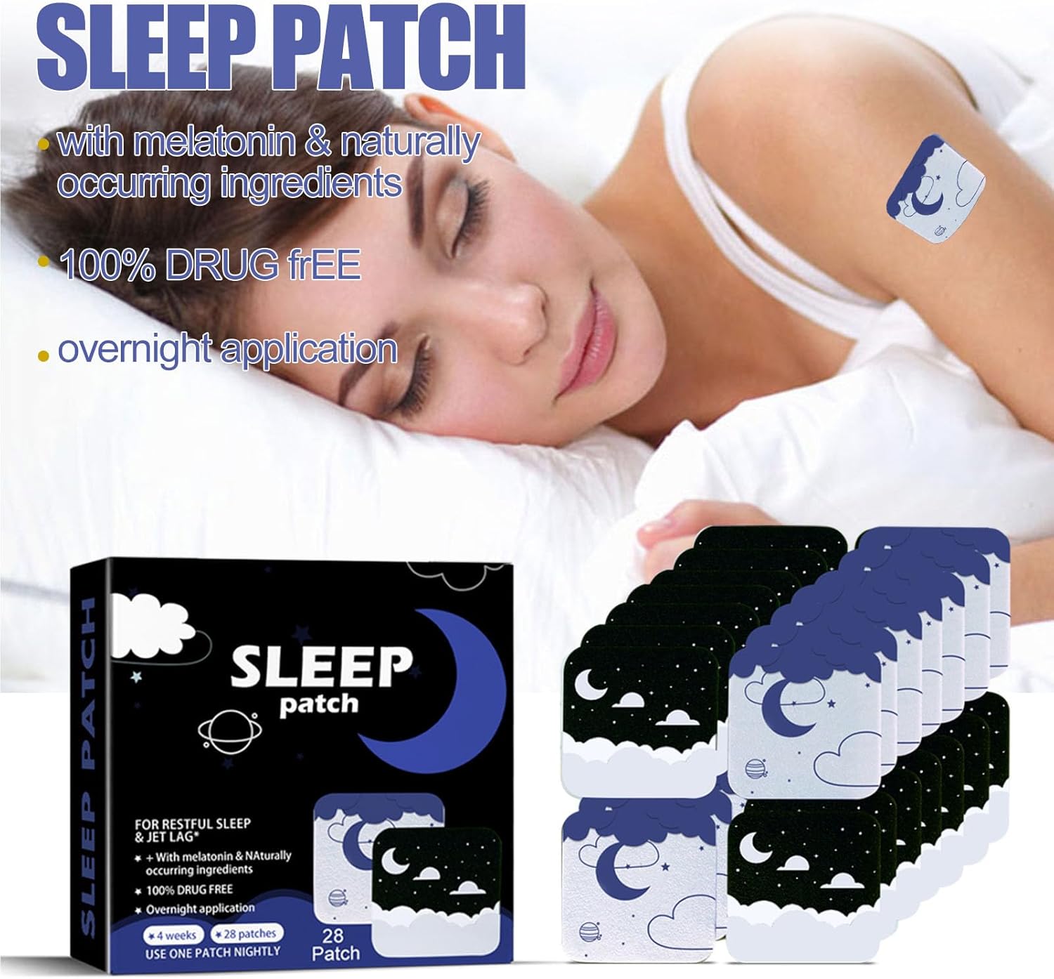 【Balance Health】Sleep Aid Patch helps you fall asleep faster and maintain a good night’s sleep.Selected extracts are more effective and allow you to fall into a deeper sleep faster.
