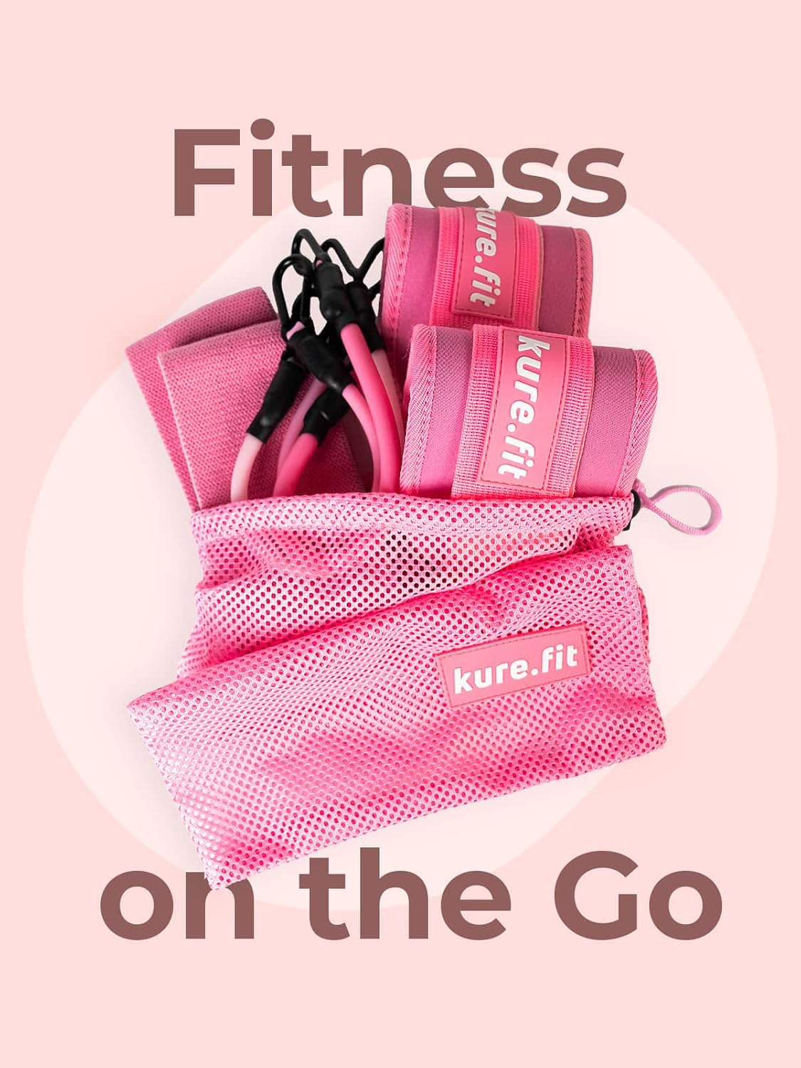 kure.fit Ankle Resistance Bands with Cuffs | Pink Booty Band | Ankle Band Set for Working Out | Leg Resistance Bands with Ankle Straps | Kickback Training Equipment for Women Hip & Glutes | Home & Gym