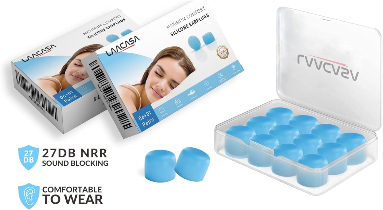 “Protect your hearing with confidence using LAACASA’s premium quality silicone ear plugs, offering 27dB SNR noise cancellation!”