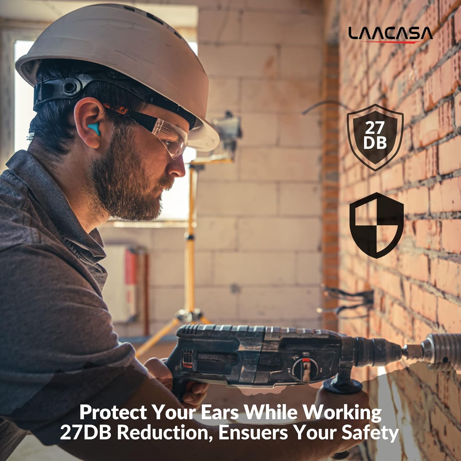 “Stay protected on the construction site with LAACASA Ear Plugs, engineered to provide optimal noise reduction for a safer and more comfortable work environment!”