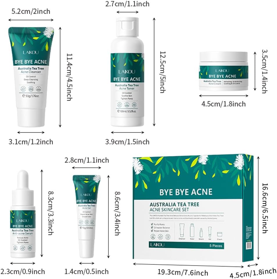 【Tea Tree Oil Anti Acne Skin Care Set】 Anti Acne SkinCare Set includes facial cleanser, toner, essence, cream and gel, providing a complete skin care routine, moisturizing and moisturizing. Anti Acne Facial Kits for Women tackles common skin concerns like blackheads, acne, excess oil, dryness and puffiness, leaving you with radiant, youthful-looking skin.