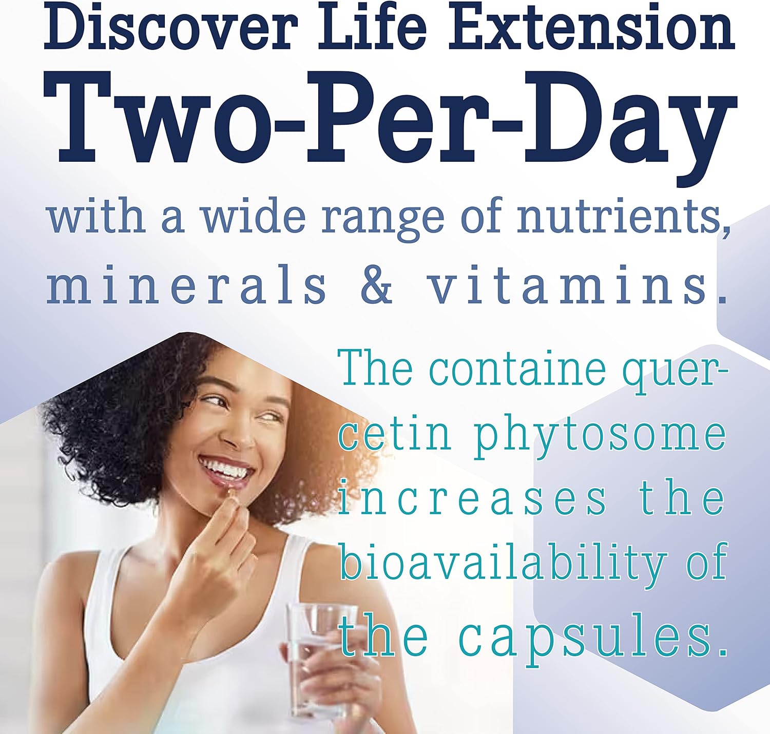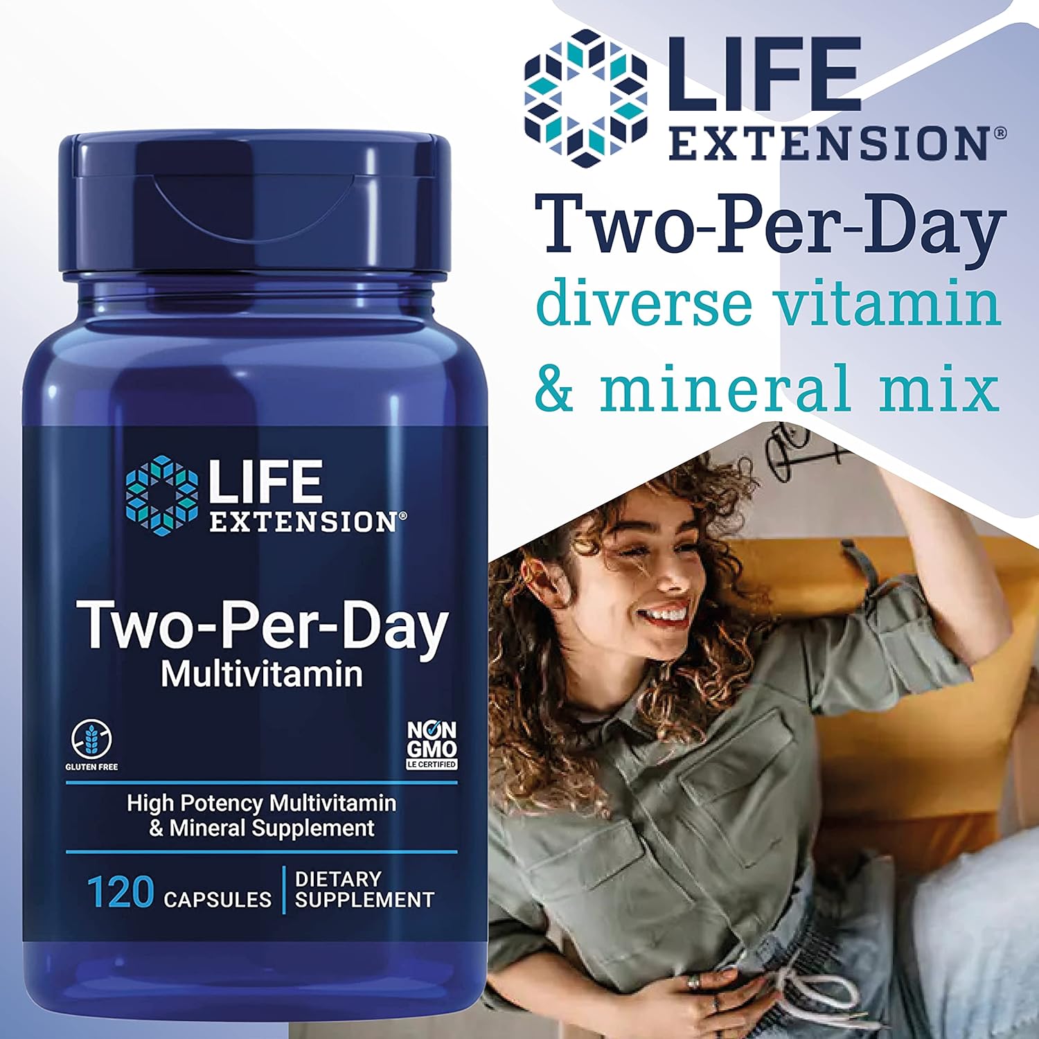 Life Extension, Multivitamin Two per Day, 120 Capsules, Vitamins and Minerals, Laboratory Tested, Gluten Free, SOYA Free, Non-GMO, with Essential Vitamin A, B12, D, E and C