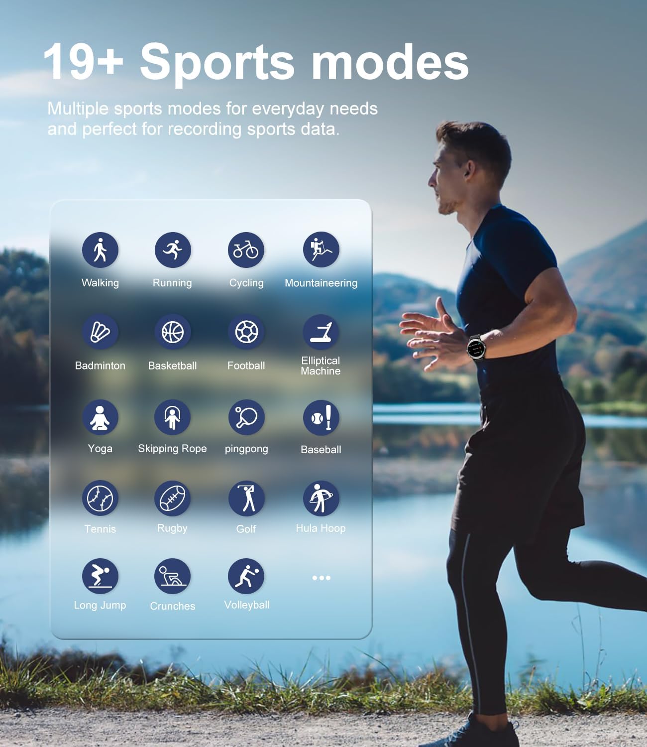 【Fitness Watch & IP67 waterproof】 This smart sport watch has 19 built-in sport modes to meet the needs of most sports enthusiasts. It can record your daily activity data such as steps, activity time, distance and calories. Smartwatch can be sweat-proof and life splash-proof. Smartwatch isn’t resistant to water vapour, warm water, hot water, and cannot be worn in hot water showers, saunas. (It is not recommended to wear the bracelet for swimming, it may be affected by water pressure)