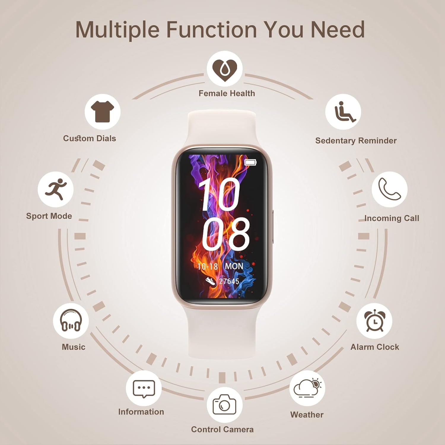 [Other practical functions] The fitness tracker has other special functions, such as stopwatch, timer, music, torch, photography, alarm clock, women’s health, mobile phone search, find a watch, etc..