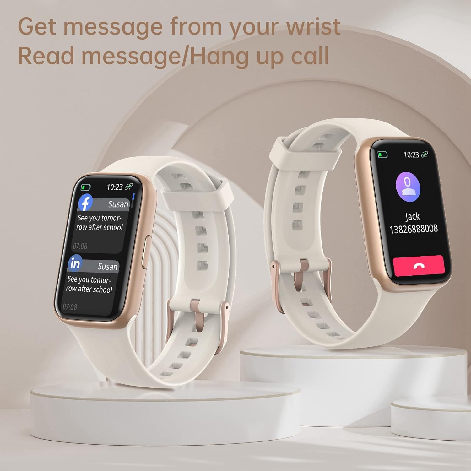 [Information & Smart Reminder] After connecting you coule receive notifications of SMS, incoming calls and SNS (Facebook, ins, Whatsapp, etc..) on the watch. The message will display on your wrist and remind you through vibration. It also has water reminder, sedentary reminder, alarm clock etc.