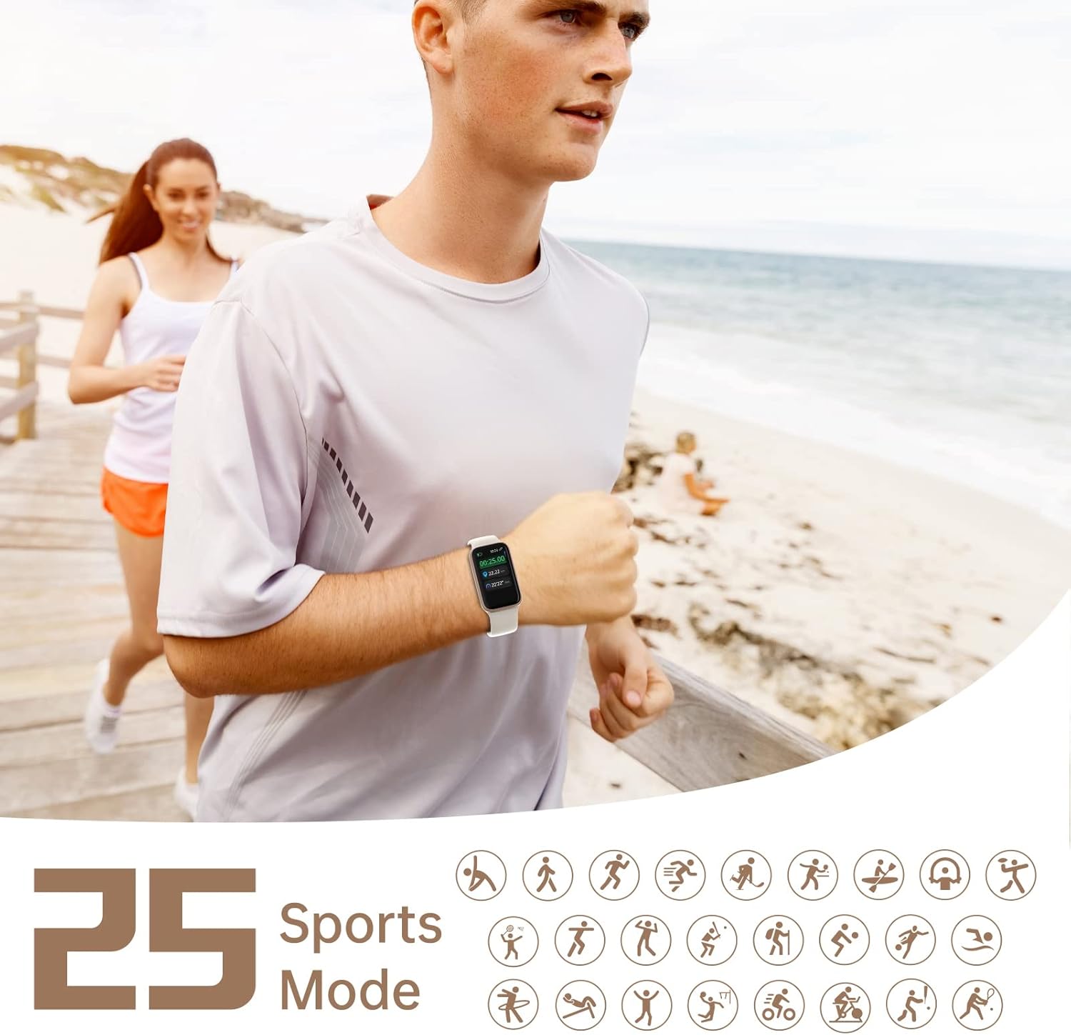 [25 Sports Modes Activity Tracker] This fitness tracker watch for women men can directly enter 25 sports modes, you can select on your watch. The smart watch can also accurately record your steps, calories, distance, heart rate and detect your activity status in real time.