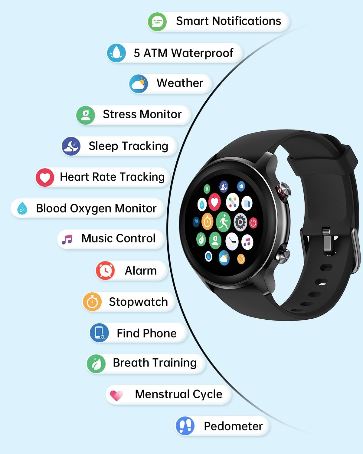 ⌚【More Practical Functions】Female health tracking, Alarm clock, stopwatch, music control, weather forecast, 3-gear adjustment brightness, breath training, etc. Make your life more convenient and controllable.