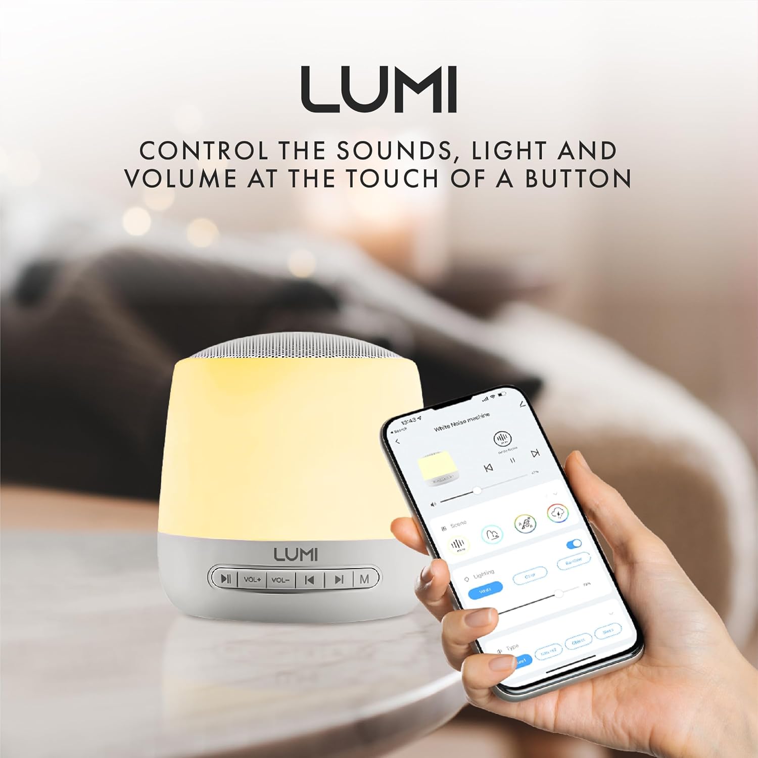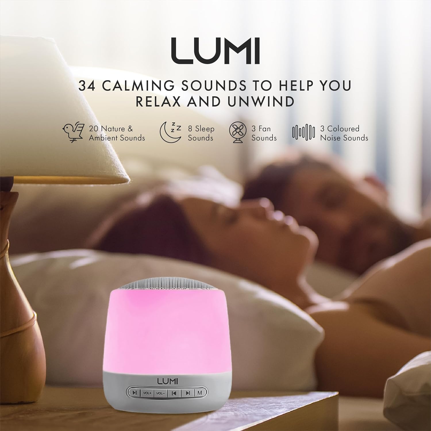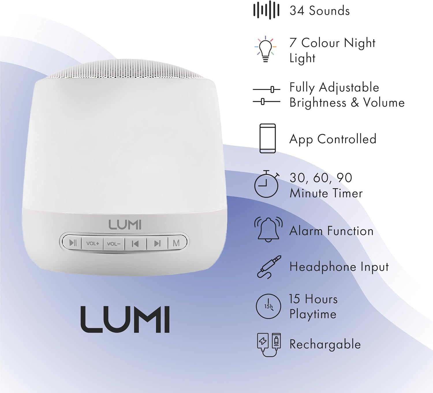 LUMI | App White Noise Machine 2.0 | 34 Sounds | 7 Colour Night Light | Alarm & Timer Function | 15 Hours Battery | White Noise Machine Baby | Sleep Sound Machine | Sleep Aid for Adults