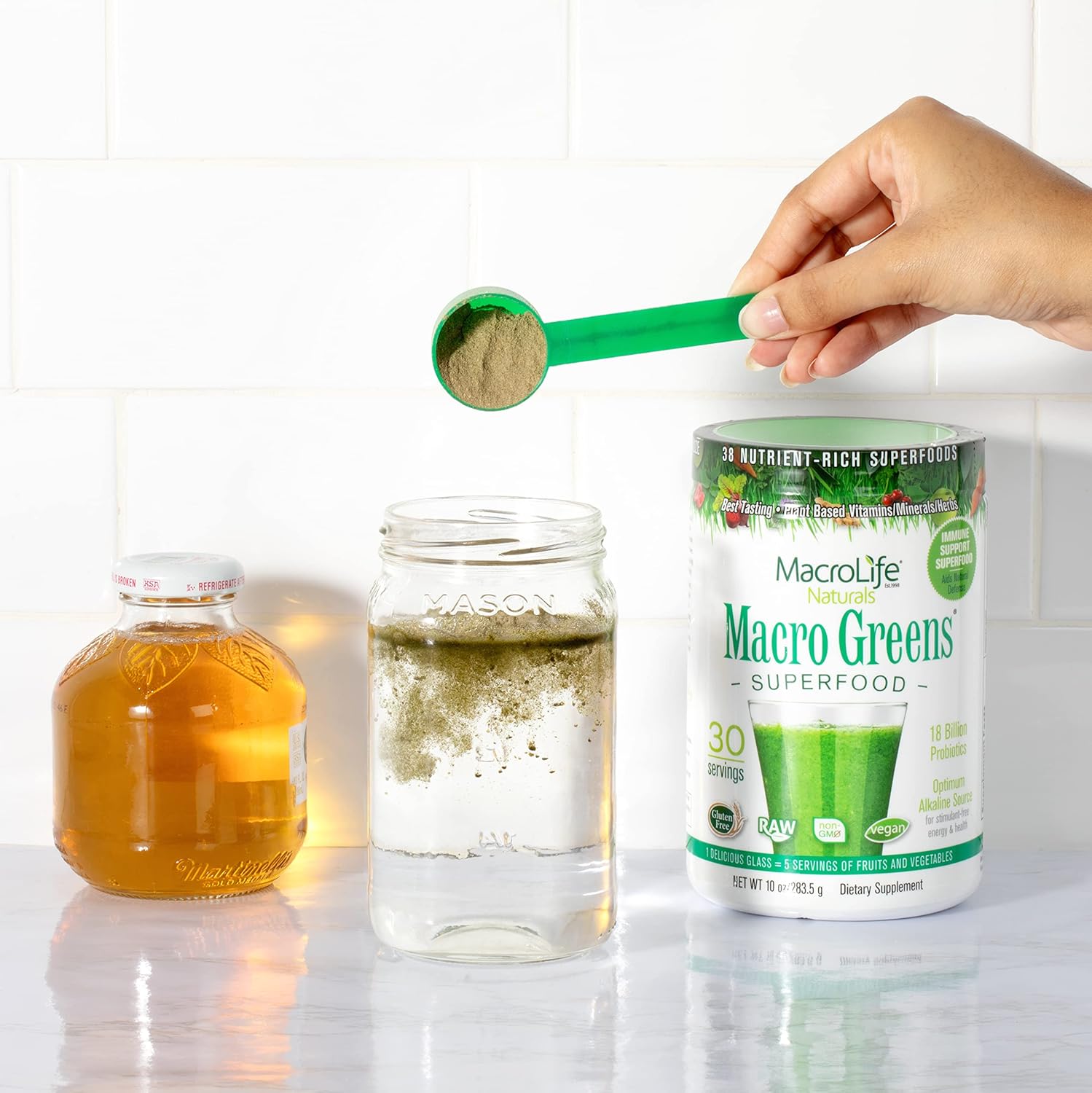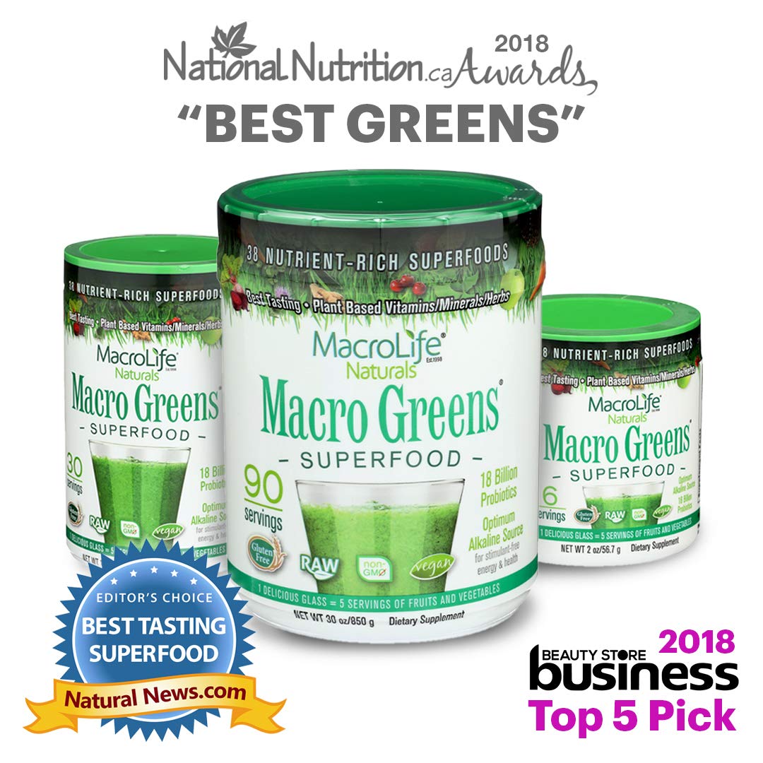 Macro Greens Superfood – 18 Billion Non-Dairy Probiotic Cultures – Raw Green Superfood With Concentrated Polyphenols – Certified Organic Barley Grass Powder – 5+ Servings Of Fruits & Vegetables