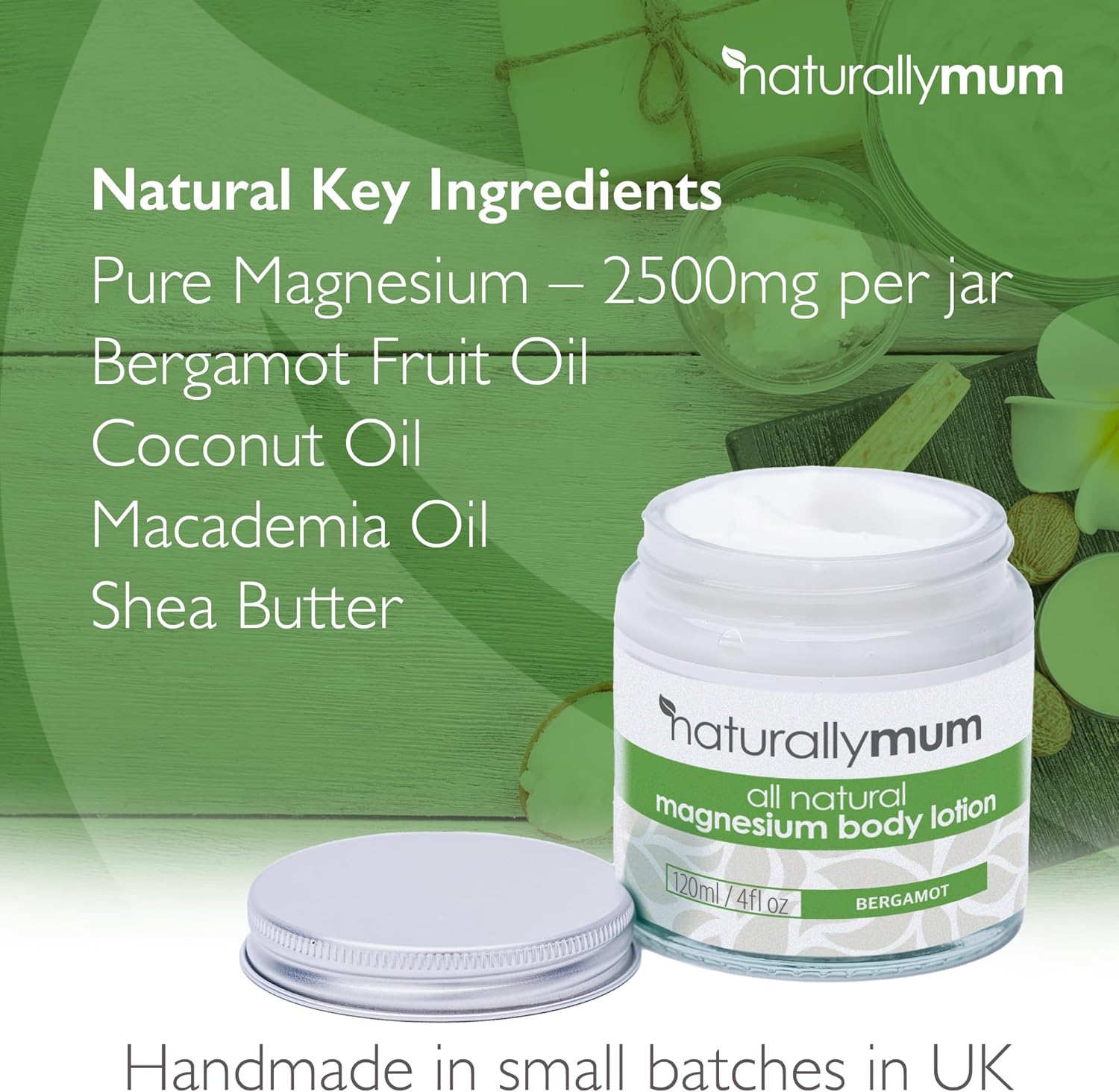 Magnesium Body Lotion for Better Sleep | Relief for Restless Legs | Muscle Relaxant for Cramps & Pain | Shea Butter Cream for Skin | Natural Sleep Aid for Pregnancy | Bergamot | 120ml
