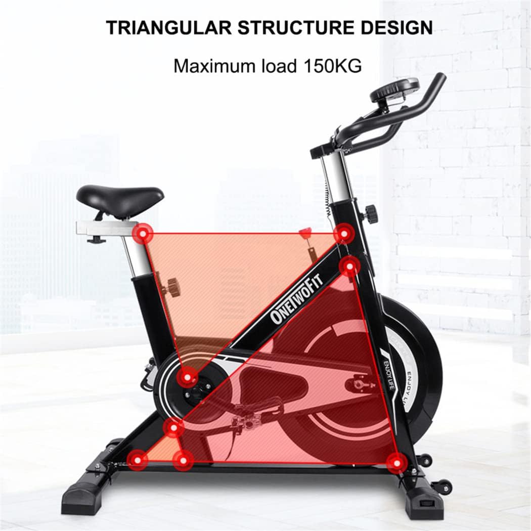 Upgraded Indoor Exercise Bike:Heavy-duty steel frame of the exercise bike ensures stability while cycling. Besides, the powder-coated surface is rustproof and can be used for a long time. This versatile indoor stationary bike is your ideal choice for home cardio workout, and the maximum weight capacity is 150kg.