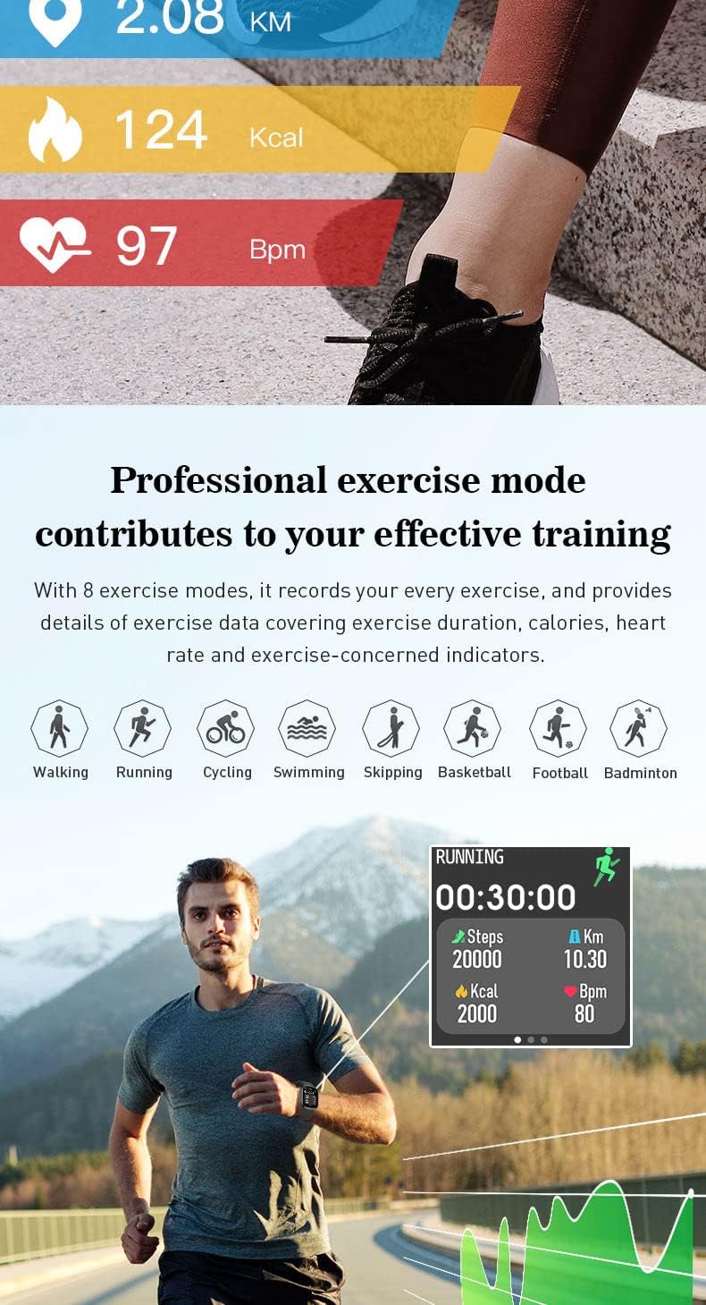 {Sport Modes & iP67 Waterproof, GPS Movement}: Support up to 10 sports modes-outdoor running,outdoor walk,indoor running,indoor walk,hiking,stair machines,outdoor cycling,indoor cycling,elliptical machines,rowing machines.you can better understand your sports outcome in specific activity.connect to your smartphone’s GPS and open “GPS movement”from App,it can show run stats like space and distance and record a map of your workout route. Suitable for when you wash hands ,sweat during exercise or running on rainy day (Not advisable for swimming or shower)