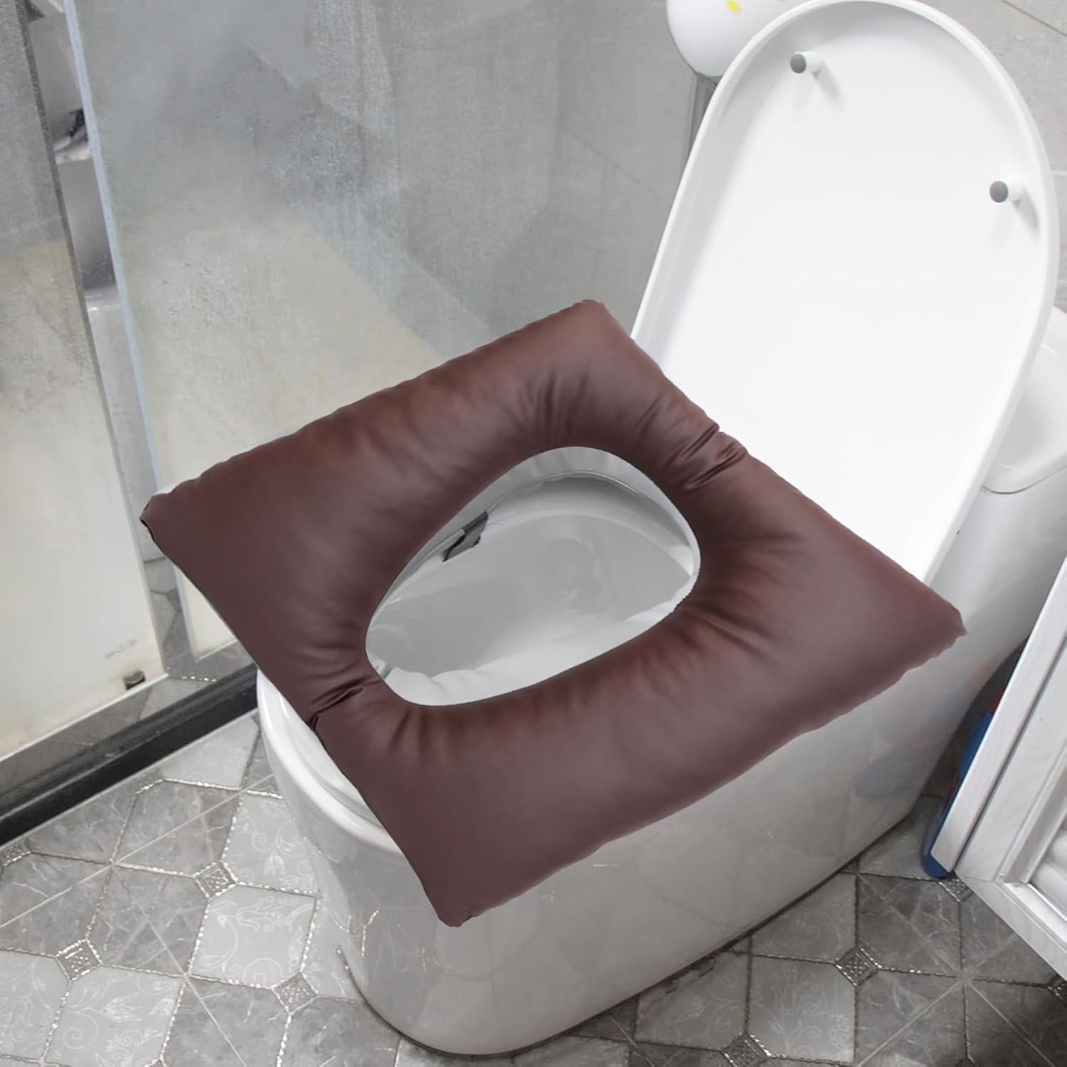 Mamba Travel Bedside Commode Cushion – Washable 16.5″ X 16.5″ Thick Pad PU Cover with Fixing Straps for Commode Chair,Portable Toilet Seat Cushion for Seniors Raz Shower Chair Seat,Brown