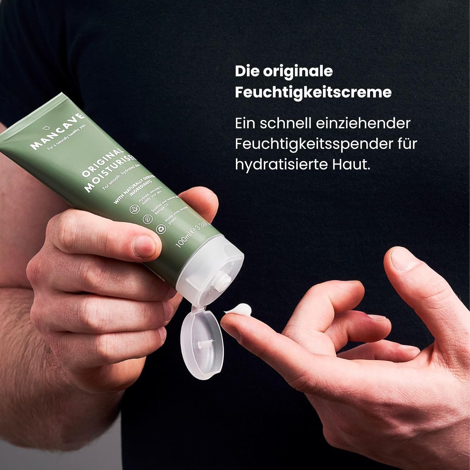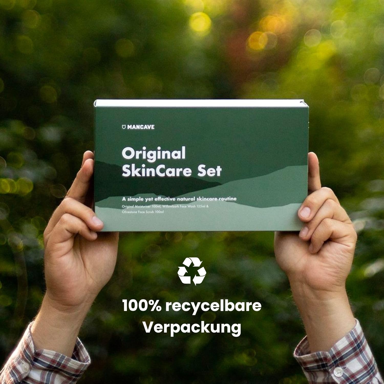 ManCave Originals Skincare Gift Set with 3 Key Skin Care Essentials with Face Wash, Face Scrub and Moisturiser for Men, Vegan, Natural formulations, Tubes made from Recycled Plastics, Made in England