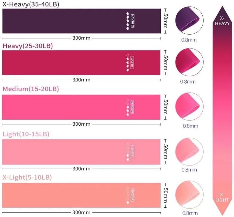 12″³ By 2″³ Heavy Duty Loop Resistance Bands Come In 5 Varying Resistance Levels. Perfect Whether You Are Just Starting To Workout Or A Gym Rat. Our Extra Light And Light Bands Are Great For Beginners, While Our Medium, Heavy And Extra Heavy Exercise Bands Are Targeted For More Intermediate And Advanced Strength Training.