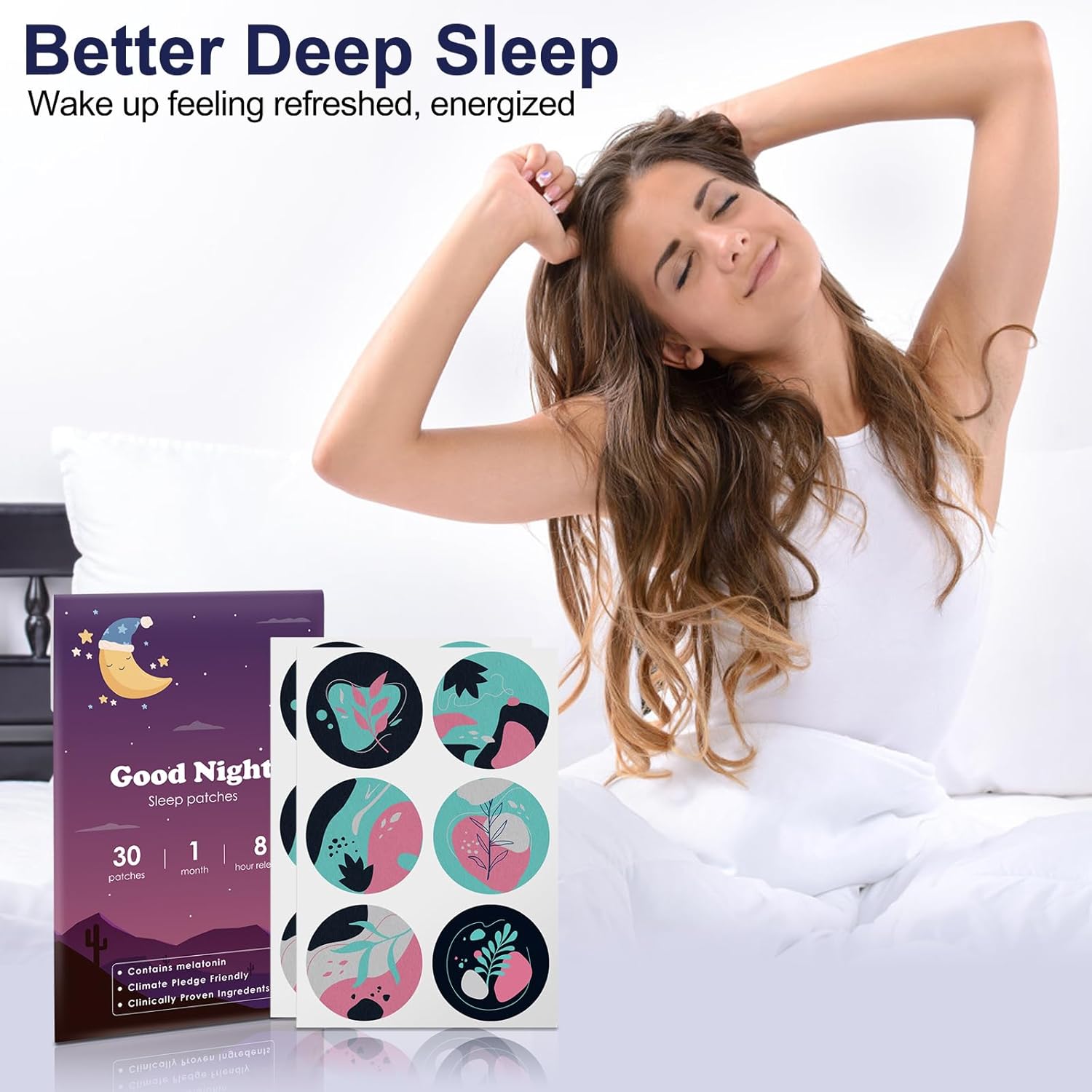 【Sleep Patches for Restful Nights】: Our sleep patches, “QuietNight,” are applied directly to the skin, helping you relax, alleviate stress, and slow down the hectic flow of thoughts, allowing for a deeper and refreshing sleep.