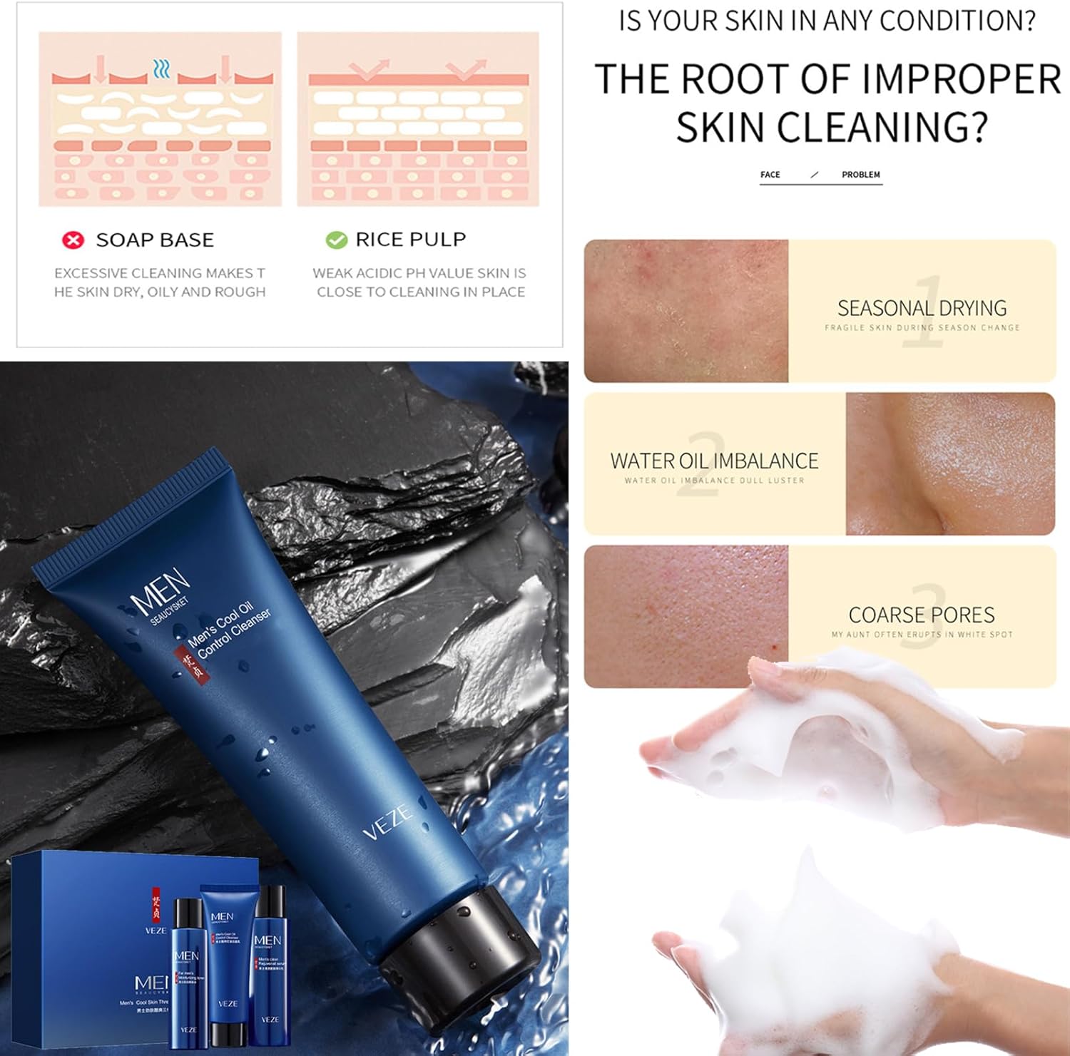 Mens Skincare Gift Set for Teenage Boys, Simple Skin Care Sets & Kits, Hydrate Brightening Sets for Teenagers Boyfriend, Includes Cleanser-Toner-Lotion(3PCS)-Clean Pore Oil Control Moisture Hydrate