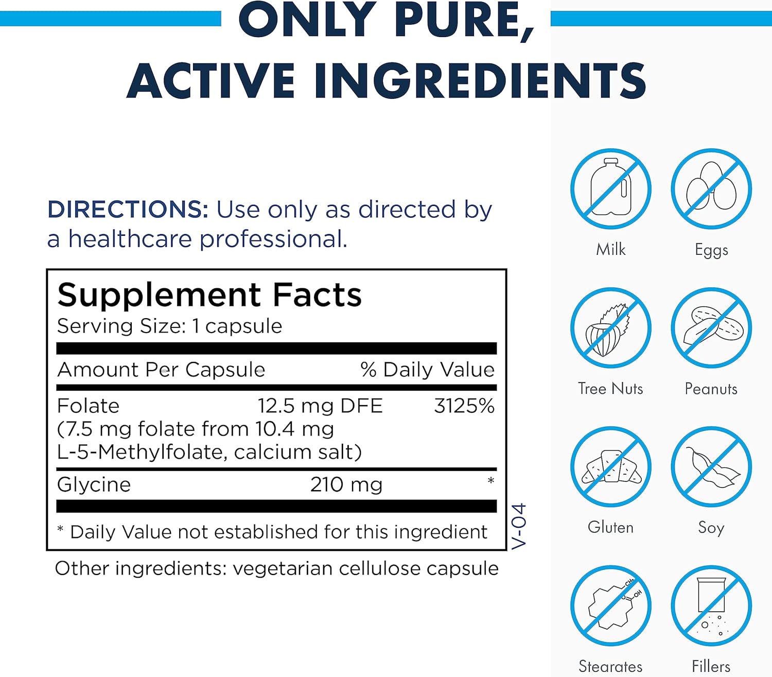No Fillers – MethylPro never uses fillers or excipients like bulking agents, glues, or binders. The only additional ingredient is the amino acid glycine. This product is non-GMO and free of soy, gluten, dairy, eggs, and nuts. Take only as directed under the supervision of a Physician.*