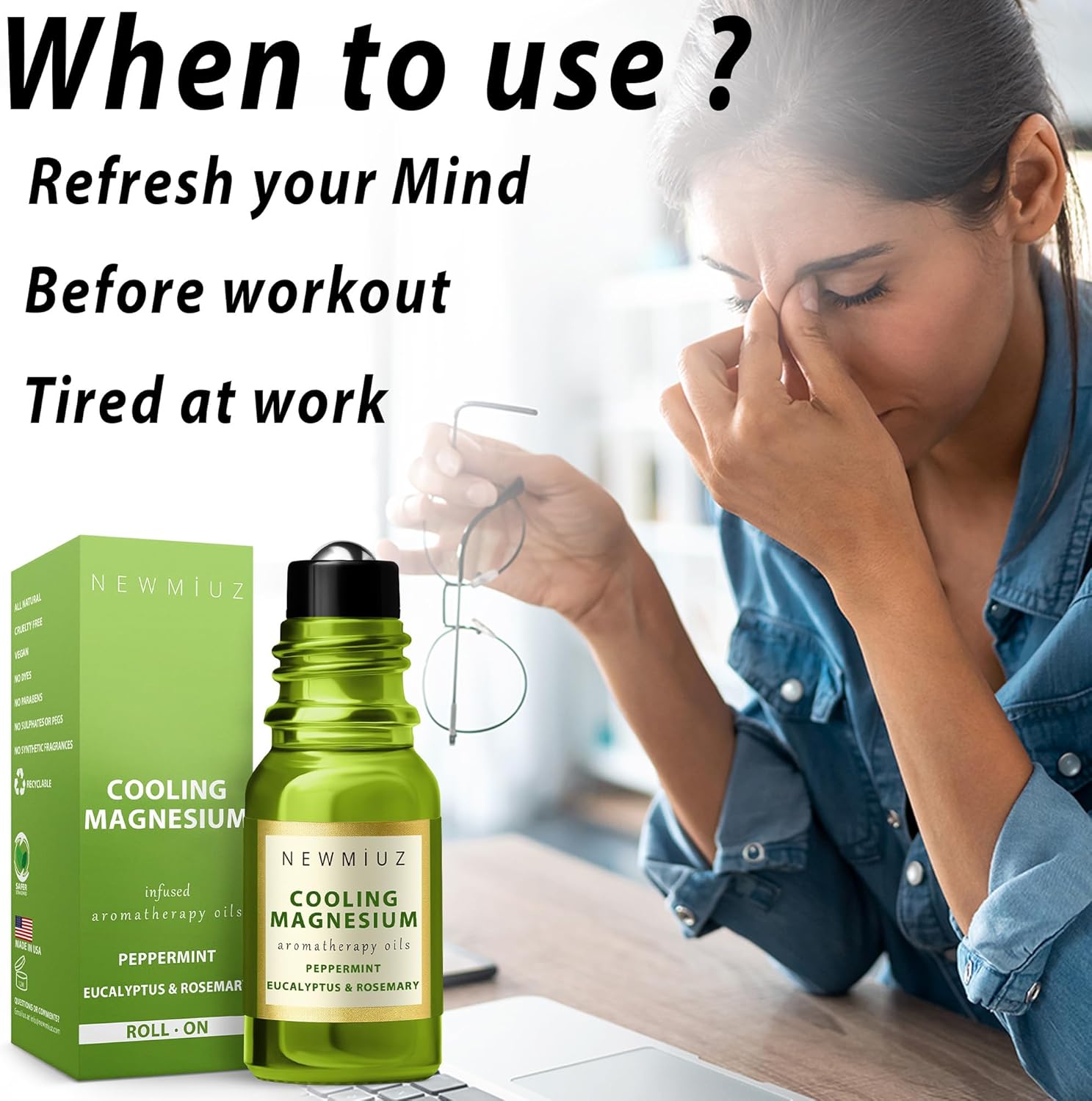 Migraine Rollon Stick – Ease Tension & Headache Relief – Magnesium Peppermint Rosemary Eucalyptus Essential Oils – Sinus Aromatherapy Cooling Therapeutic Grade Stress Relief Gifts for Women