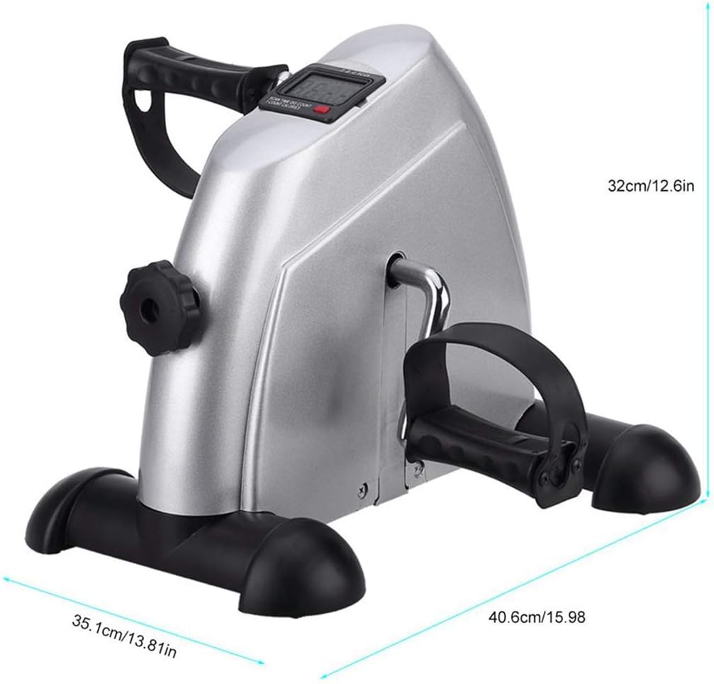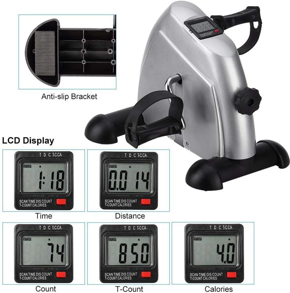 Mini Exercise Bike, Portable Home Pedal Exerciser Leg Arm Cardio Training Adjustable Resistance Knob with LCD Display (Silver)