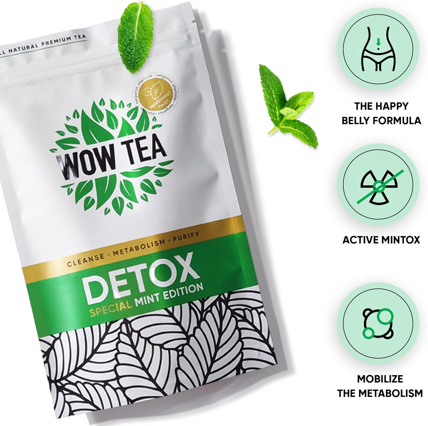 🌿NATURAL BODY CLEANSE – 21 Day Mintox tea detox formula – a complex of cleansing herbs and natural antioxidants, WOW TEA Mint Detox works to purify the body from toxins and free radicals, improving its alkalinity.
