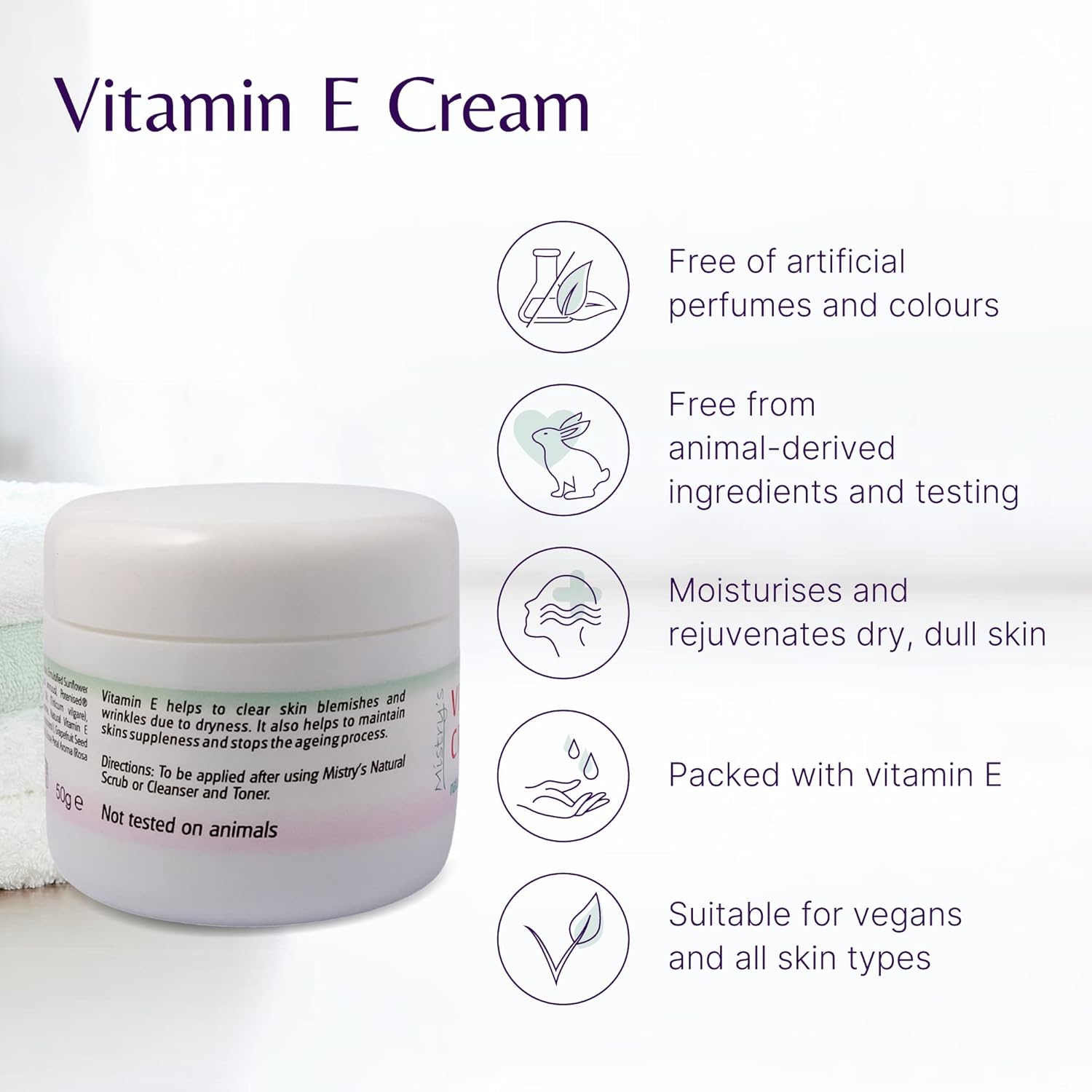 Mistry’s Natural Vitamin E Cream 50g – Moisturising & Rejuvenating, Gentle for Restoring Balance, Dryness, Stretch Marks & Anti-Aging – Additive Free, Vegan