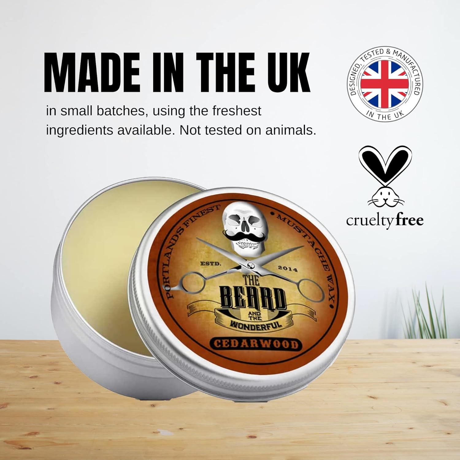 Moustache and Beard Wax 15ml – Promotes Facial Hair Growth with Moisture Resistant Feature – Ideal Beard Styling for Men with All Natural Ingredients, Strong Hold, & Cedarwood Scent Wax